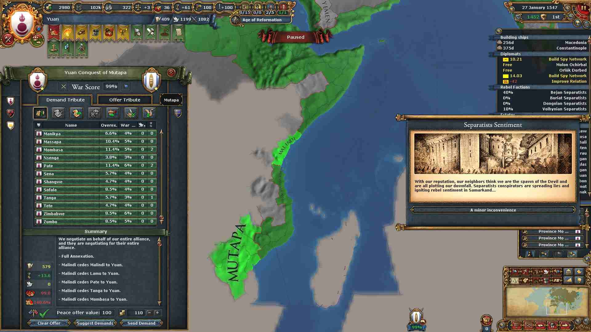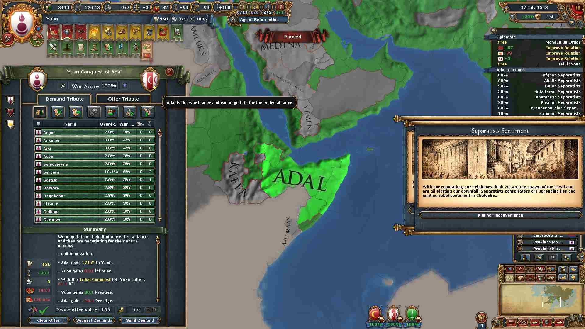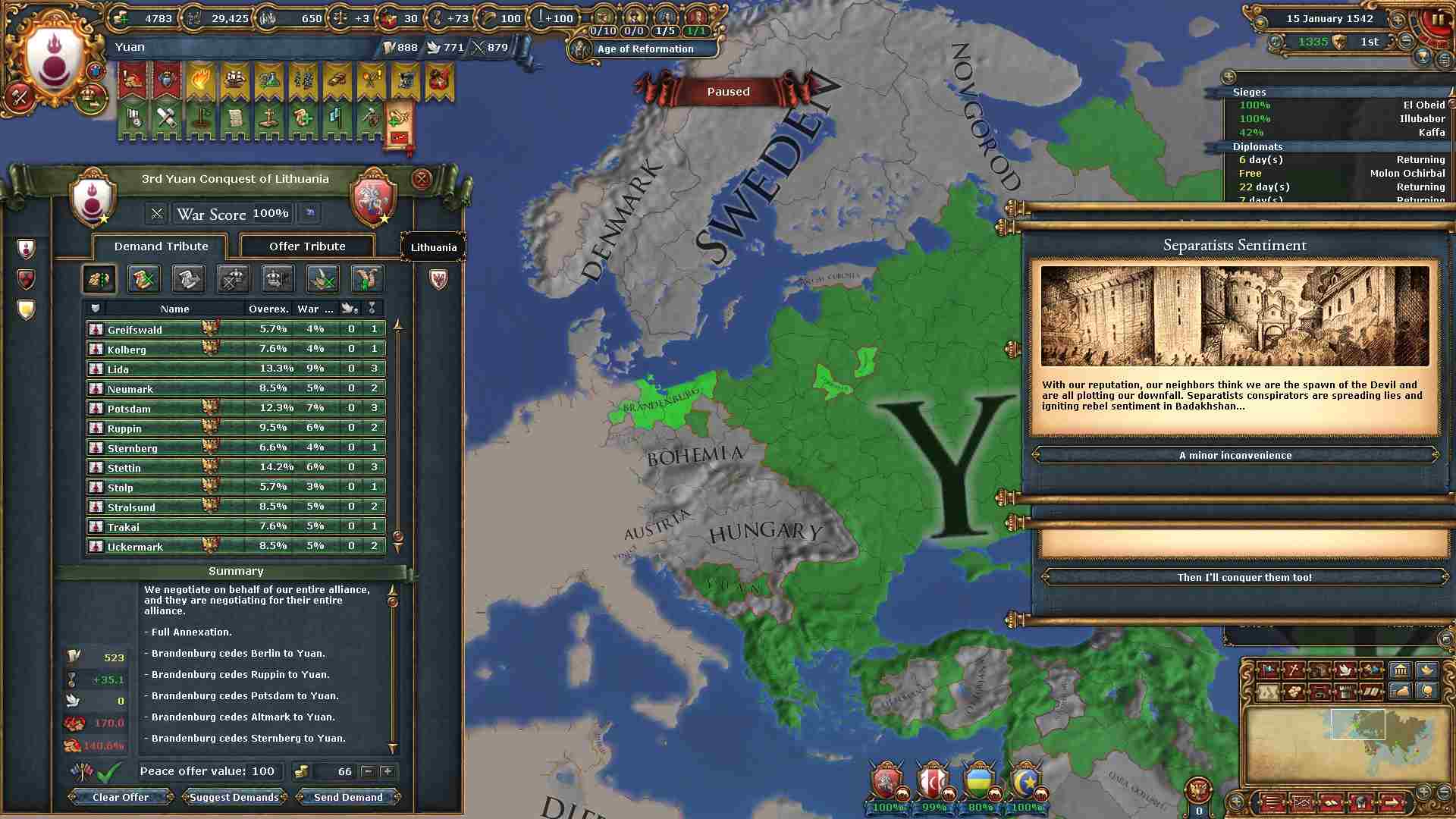 同盟:ボヘミア、オーストリア、日本 属国:ティムール、ヤルカンド