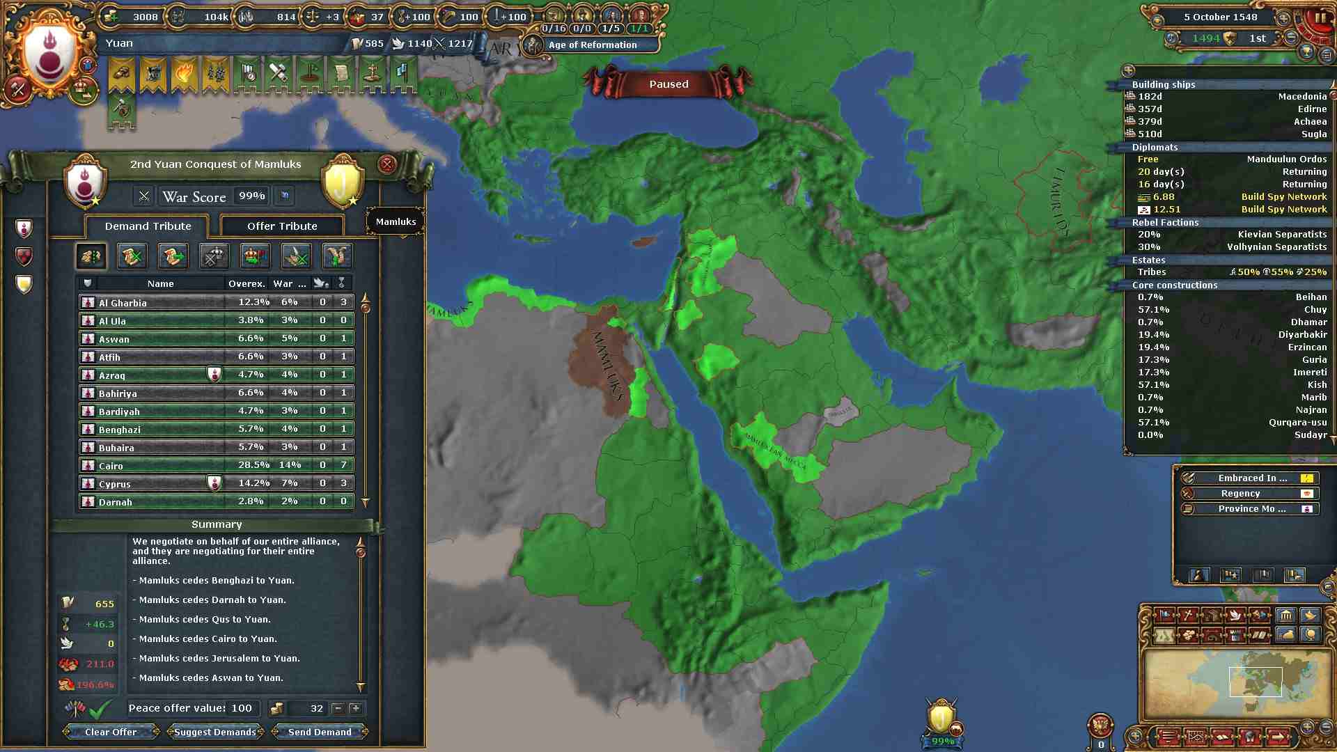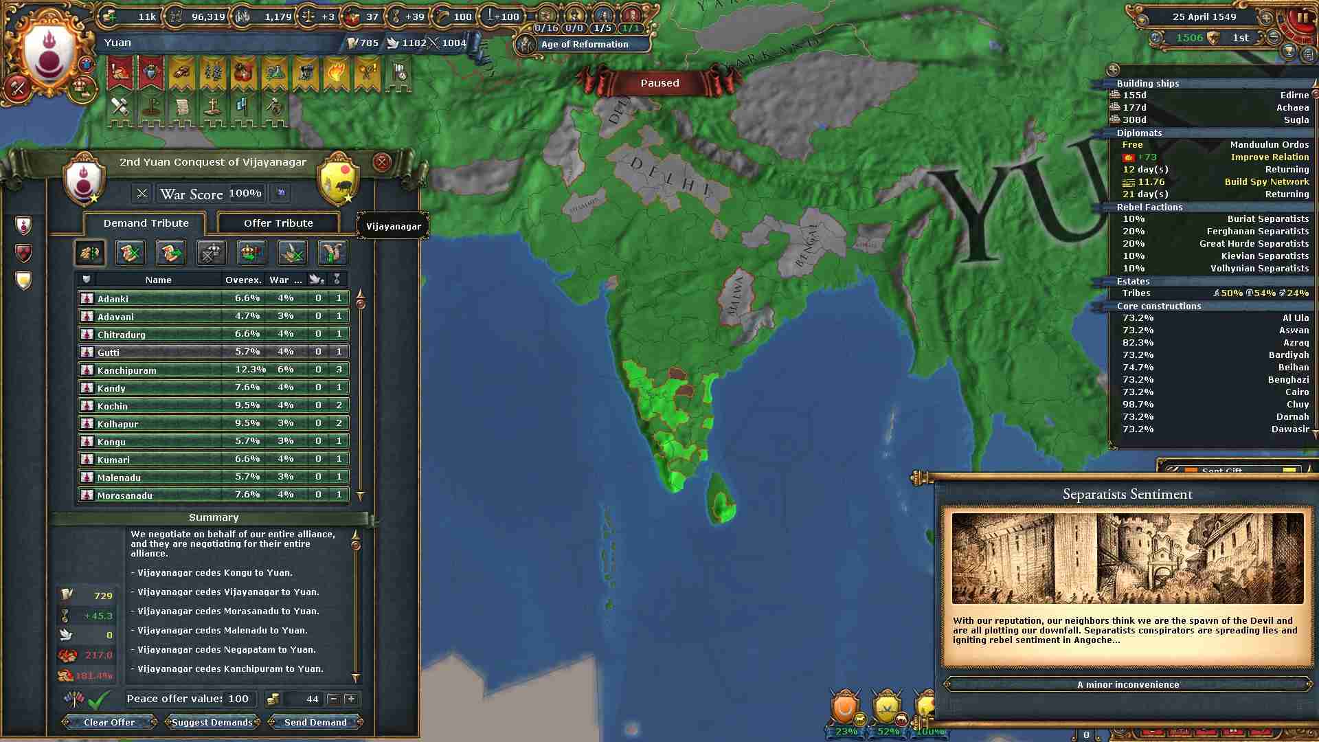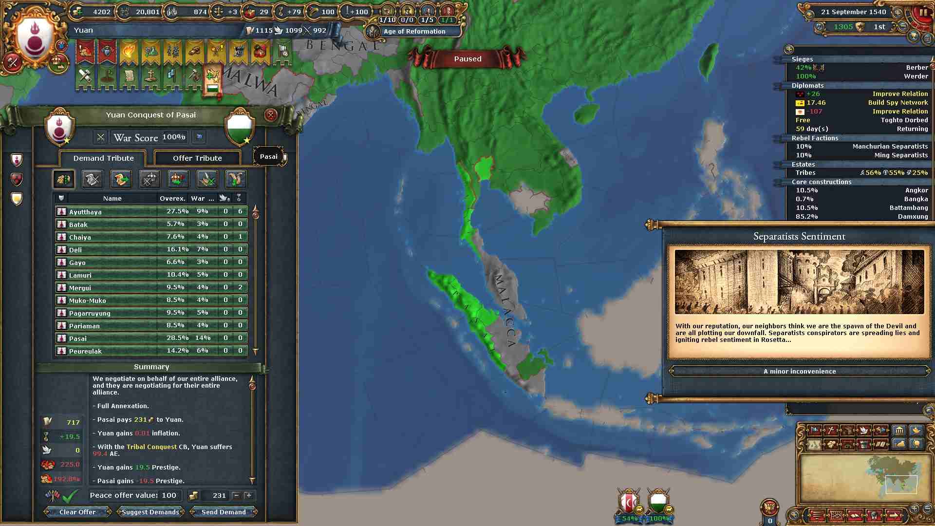 同盟:ボヘミア、オーストリア、日本 属国:ティムール、ヤルカンド