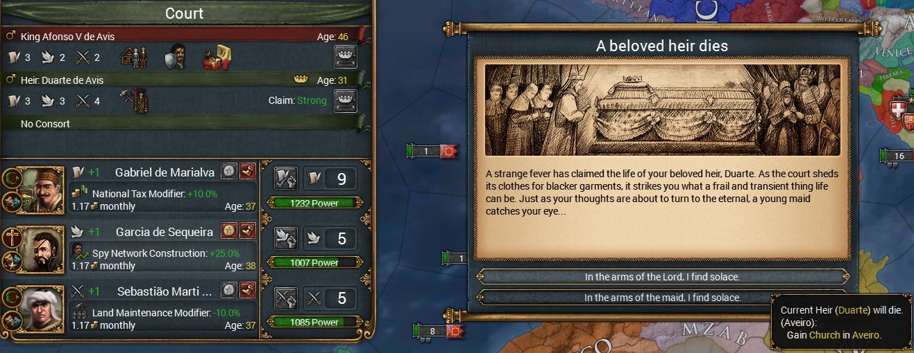 一方で国の中枢部では王の弟で後継者のDuarteが若くして死亡。後継者選びに翻弄されるなか、幼いものの有能な女の子が候補に挙がる。