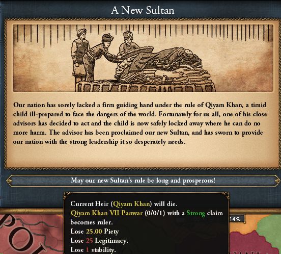 イベントで新君主誕生するが、前回と違い無能(0:0:1)