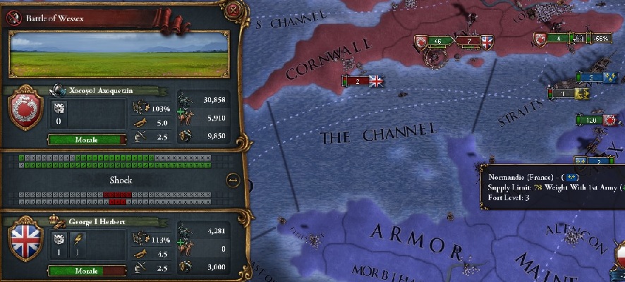 Sunset Invasion挑戦の場合、いずれ征服する欧州の地は基本的にカトリック州が多いため、改宗したほうが得。