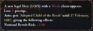危うくイベントで後継者が誕生。継承権が weak だが、同君連合下に置かれるよりはましだ。