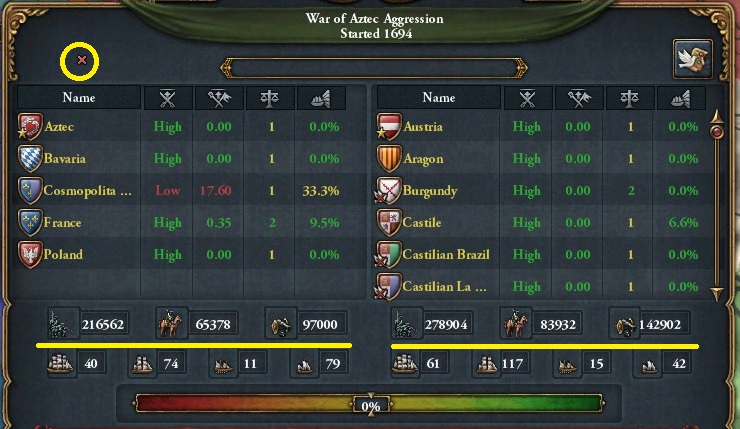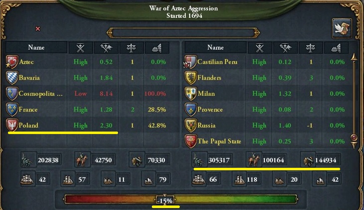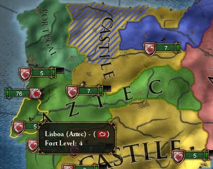 アラゴン・ポルトガルが防衛側に入るので、アステカも防衛側で参戦する。この場合は本気で戦ってアラゴンが負けすぎないように助力する。