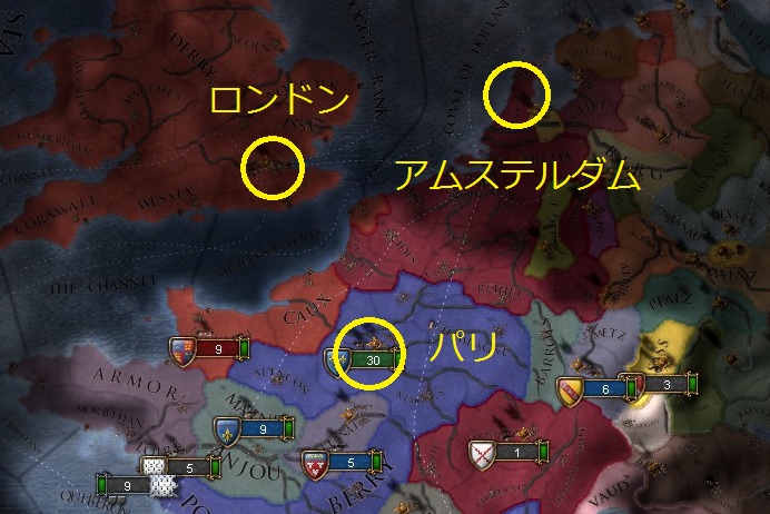 残るは、アムステルダム(フランデレン領)・ローマ(フランス領)・パリ(フランス領)
