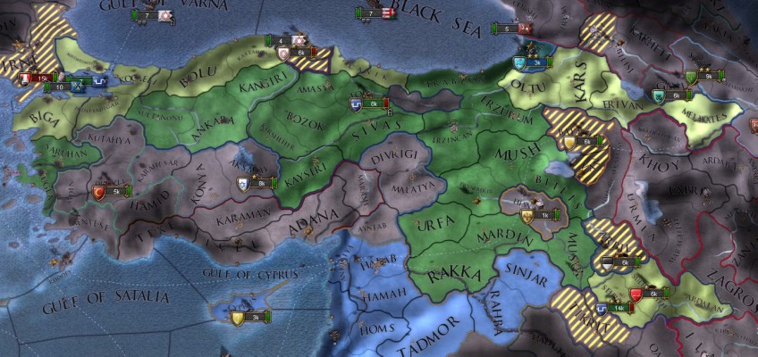 泥棒猫のヴェネツィア・ハンガリーが相当勢力を伸ばしやした。ヴェネはアナトリアにまで汚ねェ手をかけてやがりやす。