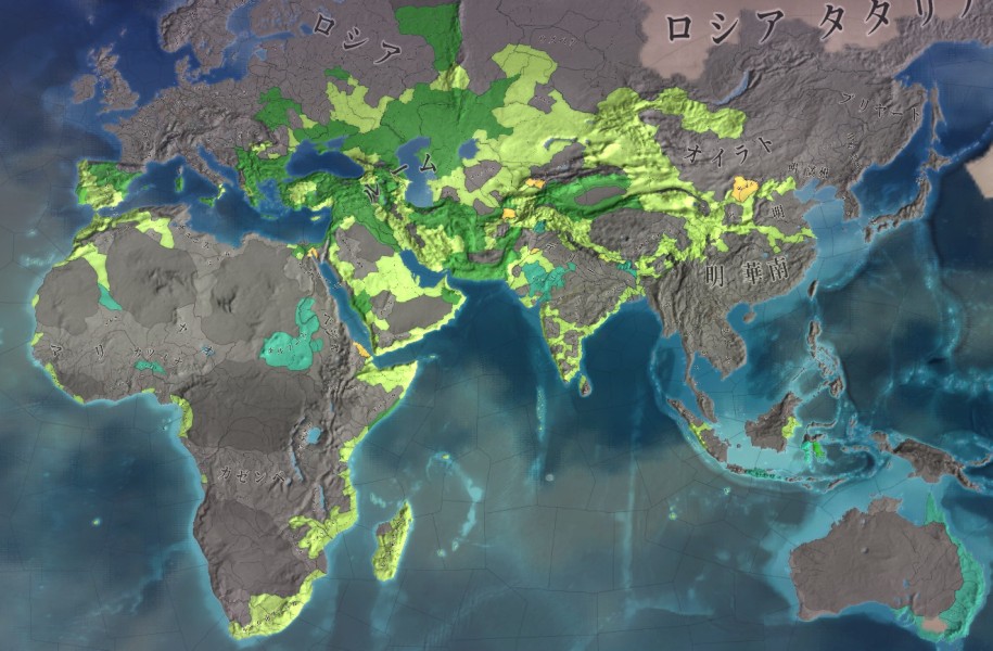 我が国は前回ようやくインドに足掛かりを得たわけだが、インド亜大陸内では既にデリー、ヴィジャヤナガル、ベンガルなど、大国が育ってきておるの。
