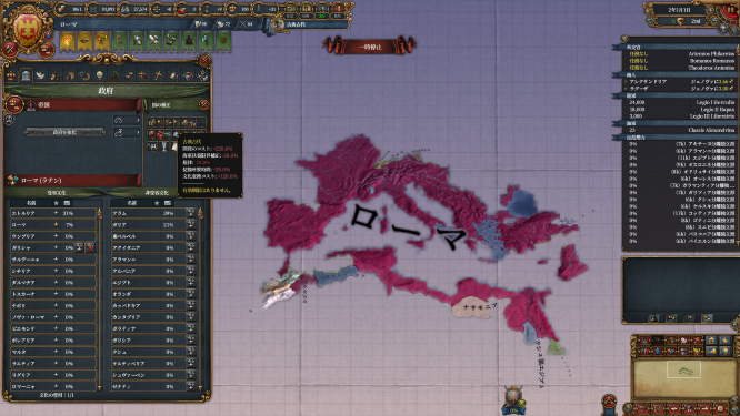 巨大帝国とパクス・ロマーナはローマにしかついていないデバフです。