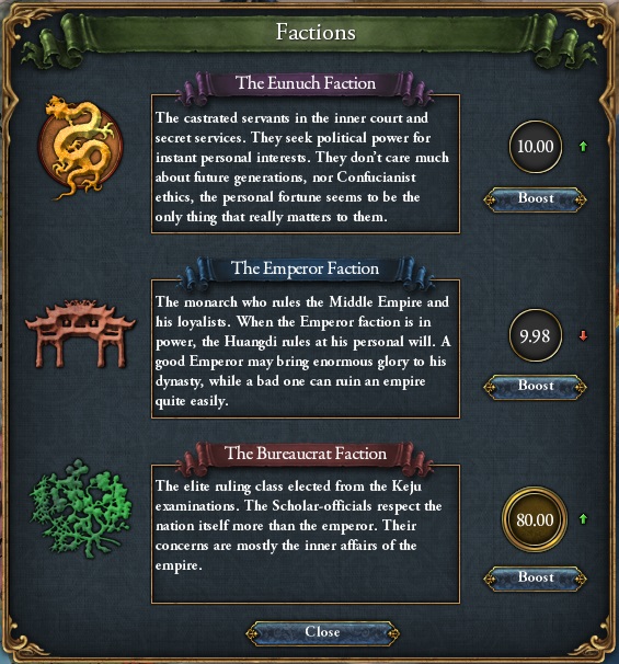 ・明の派閥:宗教派(Temple Faction)を皇帝派(Emperor Faction)に変更。それぞれの派閥の効果の変更、各派閥の影響力は明の内政によって変化