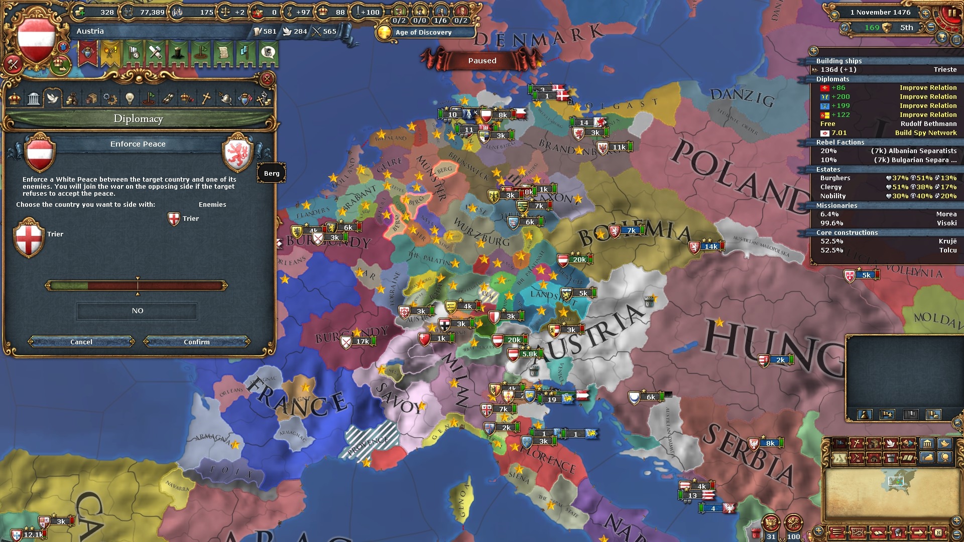 これにより帝国の拡大(Expand Empire)の宣戦事由が使用可能となりました。