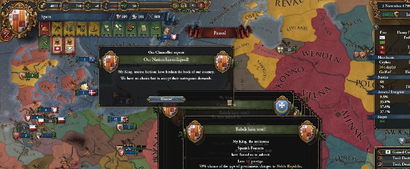 おまけに人的資源は枯れ、過剰拡大を解消する統治点は遅々としてたまらず、安定度さえ回復できぬ。
