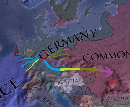 Mughalsの介入がしばしの間遅れるとあって、まずはGermanyに全軍で進撃しこれを殲滅後Commonwelth領にて軍の再編