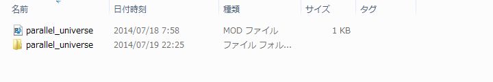 MODをアクティブするには本体データフォルダと「.mod」拡張子の実行ファイルが必要になります。
