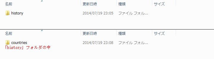 同じく作成した「history」のフォルダ内に「countries」というフォルダを作成してください。
