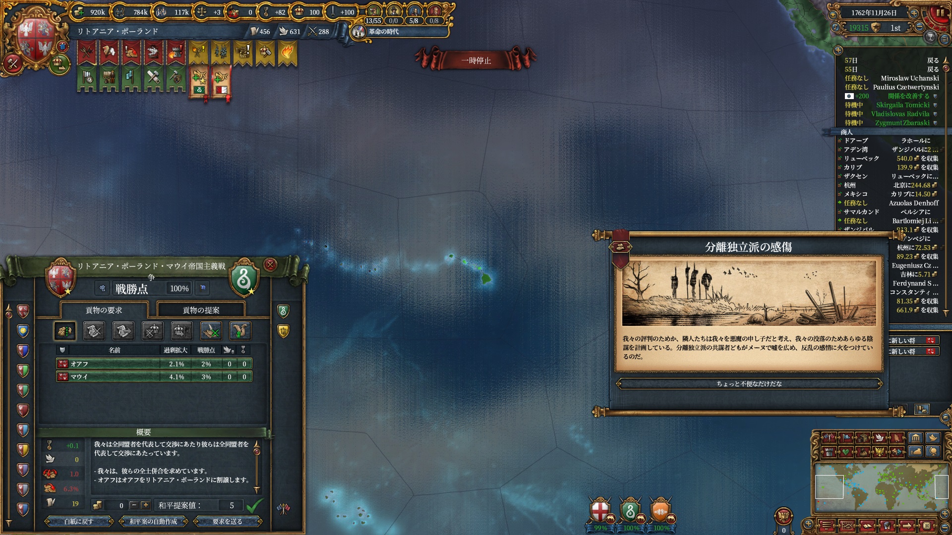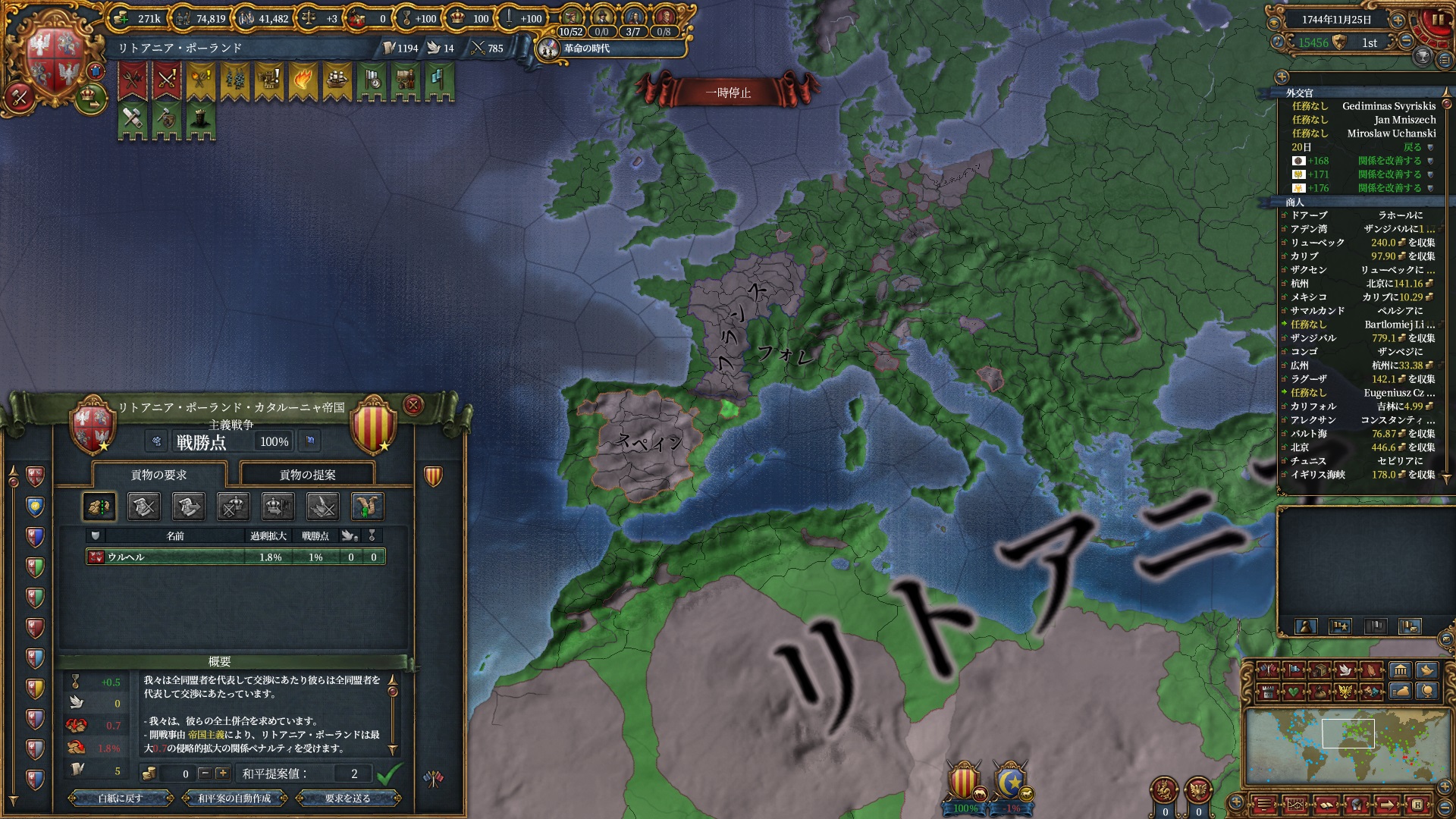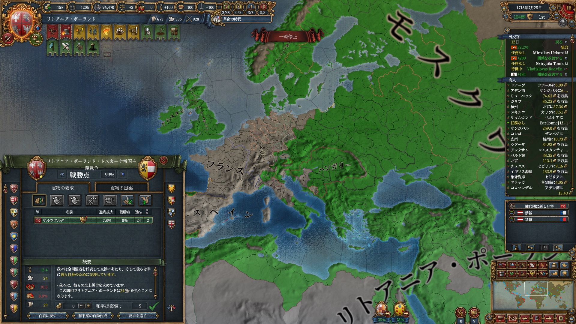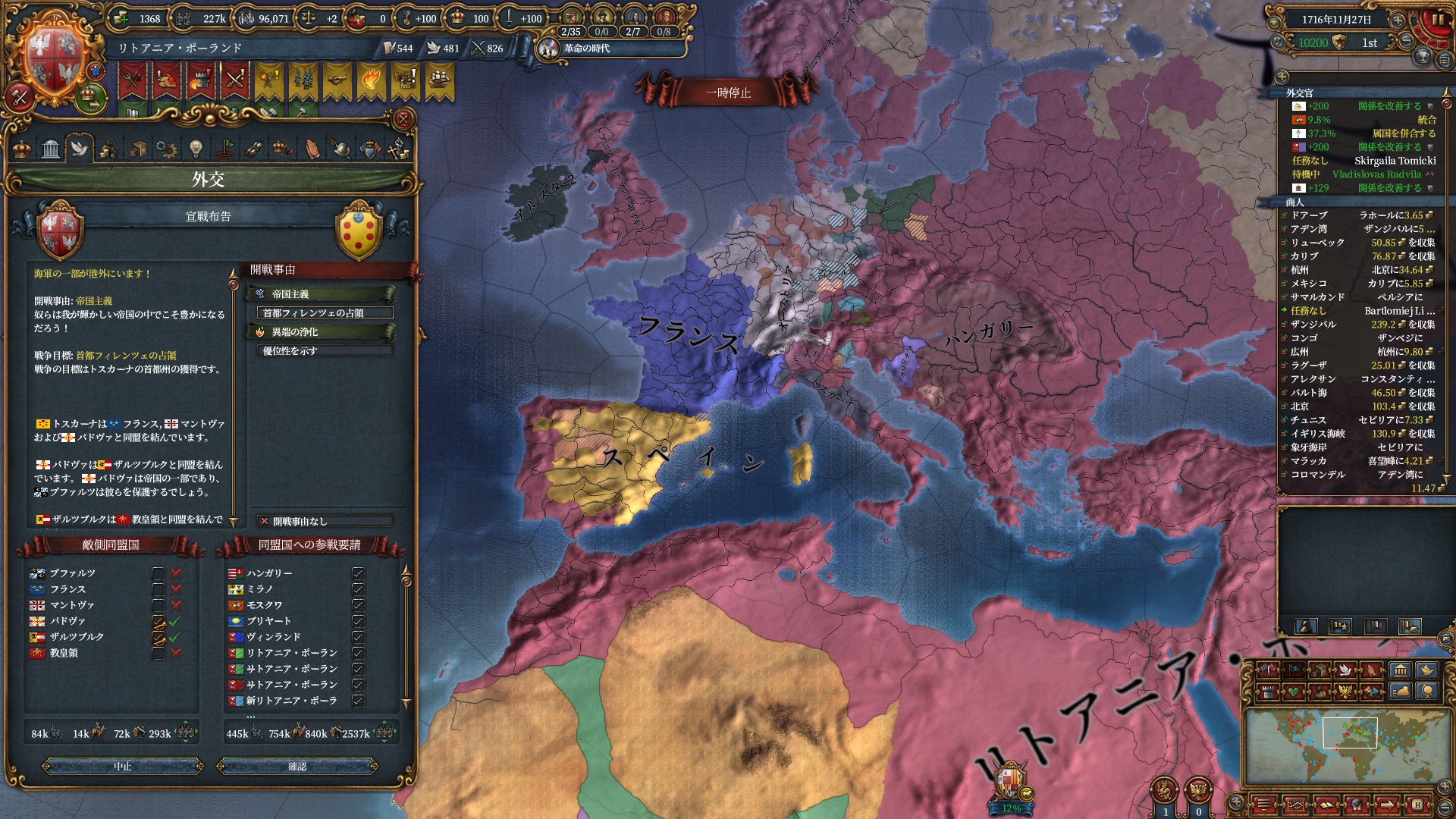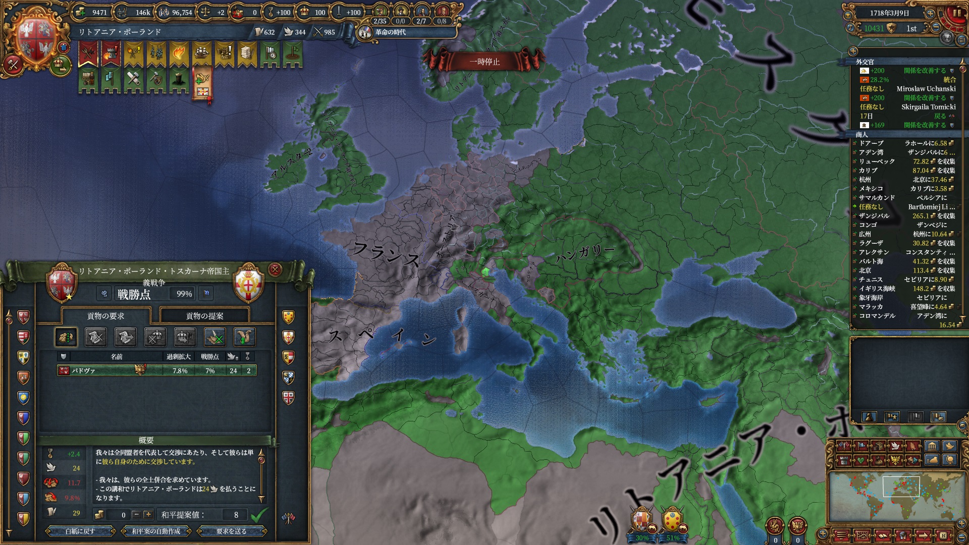 ゲーム後半はリトアニア=ポーランドNI・権勢アイデア・権勢統治ポリシーが合わさり属国併合コストは-60%に達します(特権込みで65%)。