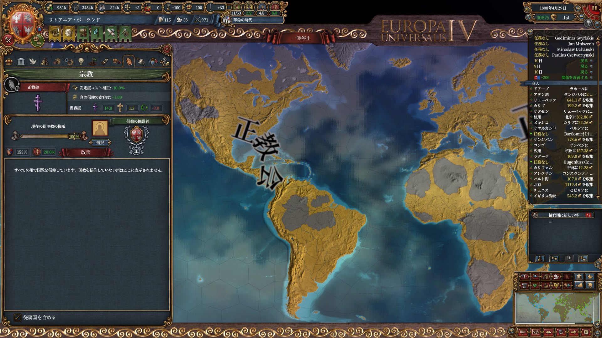 あとは緩やかに改宗プレイをば。植民地国家が大分残ってるのでそこそこ時間がかかりそうです。