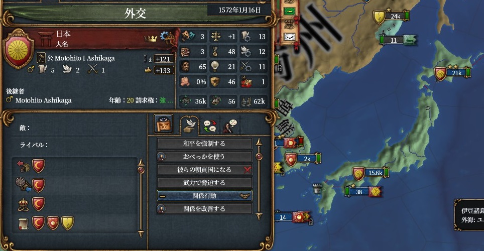 ただ異なる特徴としては、君主点の貢納がない代わりに、交易力の半分を貰えて宗教を強制*2することができます。