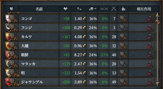 eu4での最もな壊れと言われるマジャパヒト幕府は戦争をする必要がありますが、こっちは非戦で開発600クラスを植民地にできてしまうので、マジャパヒト幕府を超えたといえるでしょう。