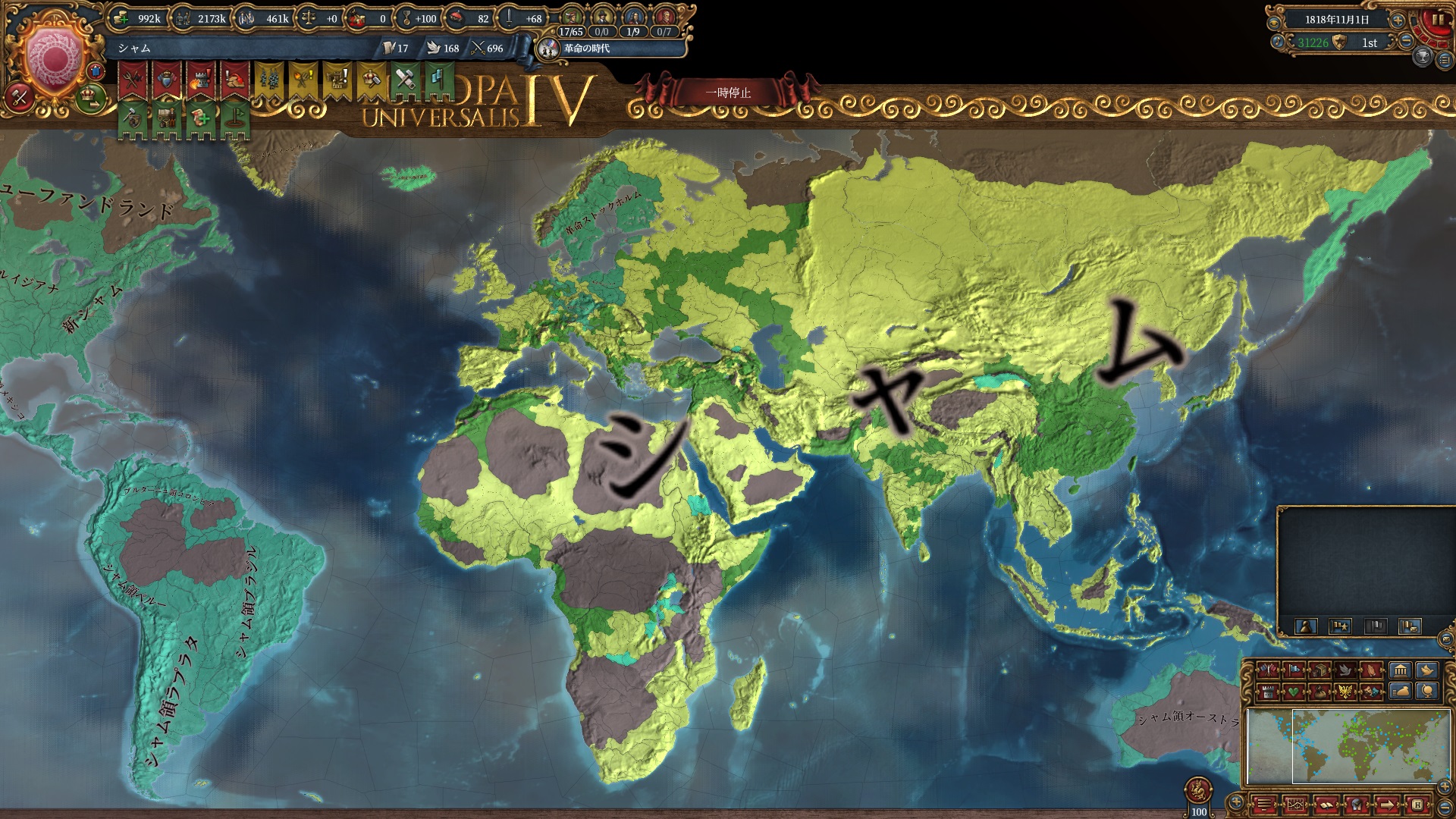 ラストスパートが遅れたり中盤暇したりと征服事業に滞りが結構あり、改宗が中途半端だったとか属国が残ってたりとしているのは許して