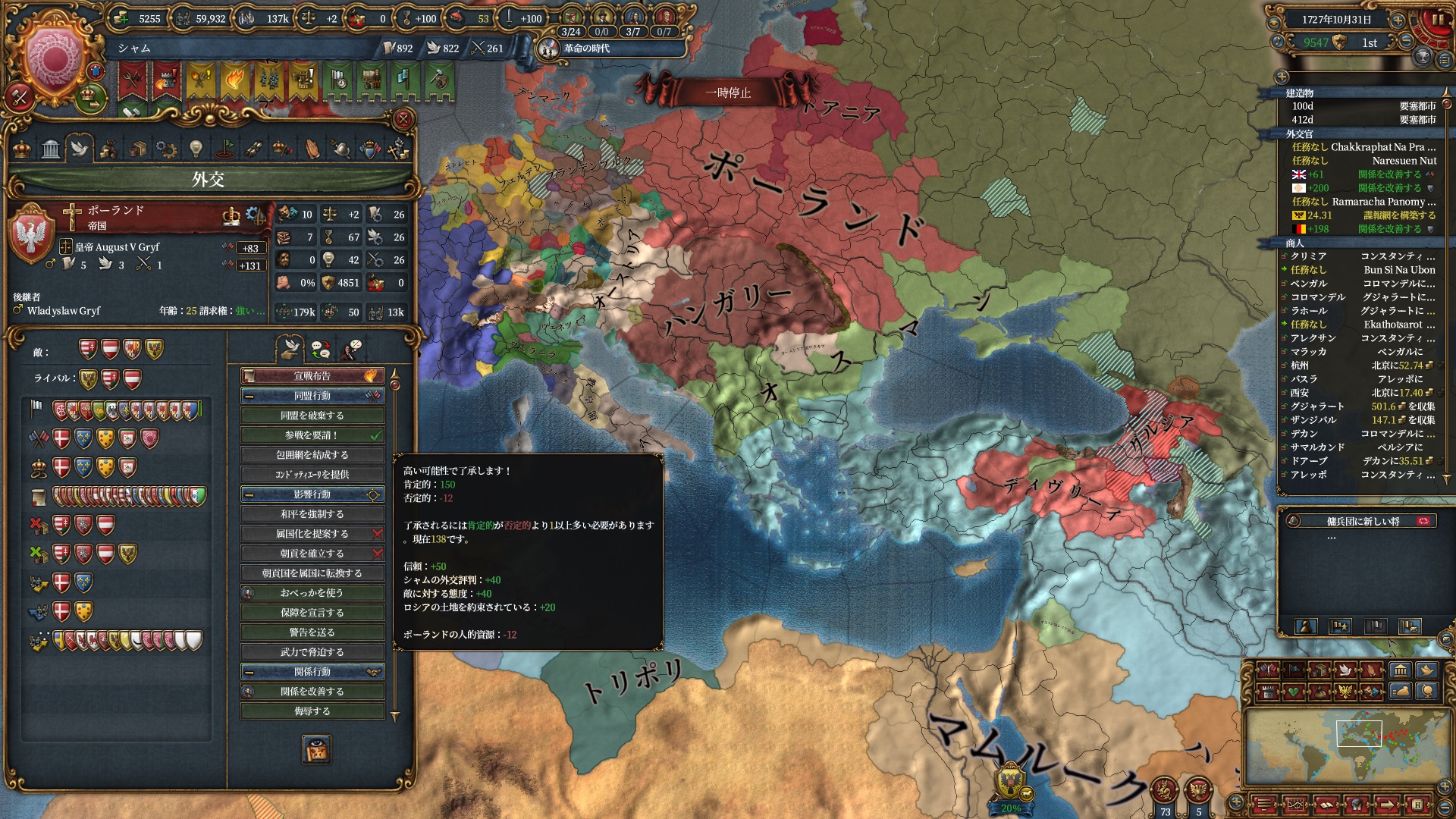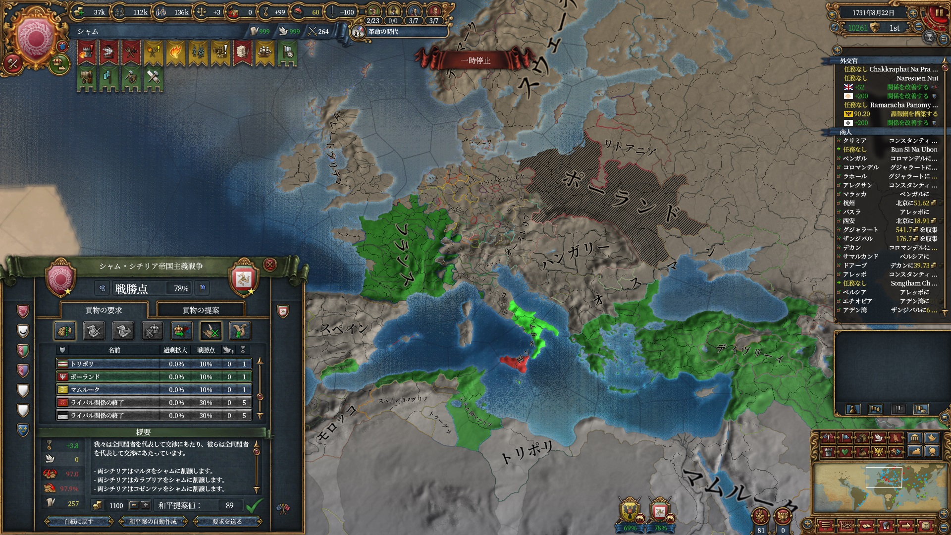 なおここでポーランドのロシア侵攻(ブランデンブルク継承戦争)に巻き込まれてしまい、州を踏まれまくるわ停戦期間を作らされるわの地獄に。