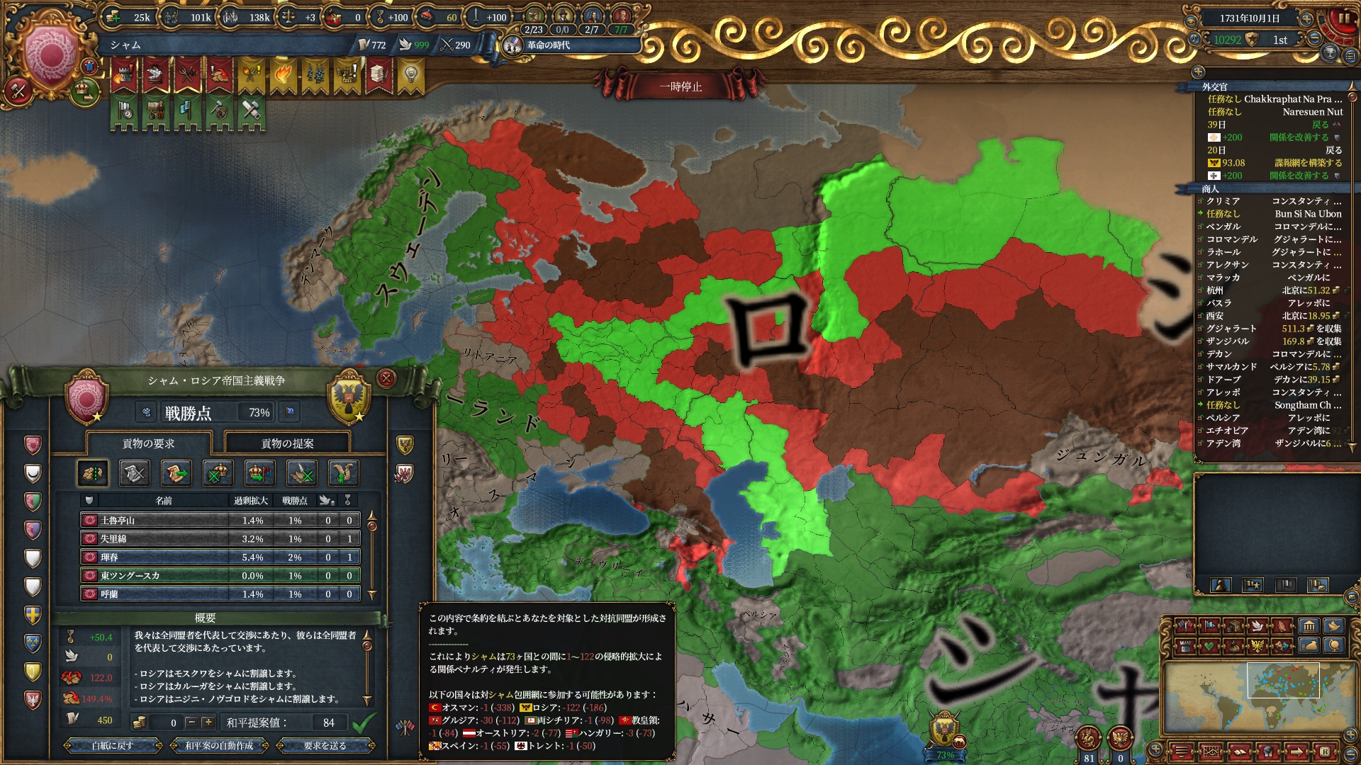 この年代でロシア征服事業が大分遅れそうなのはとても悲しいです。