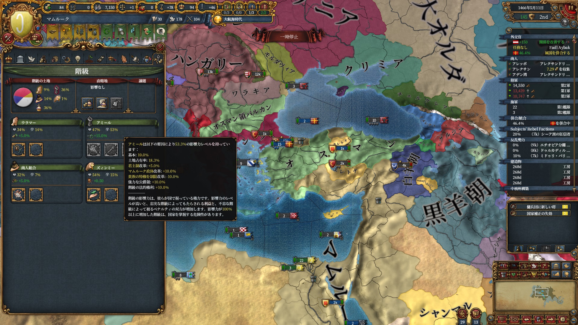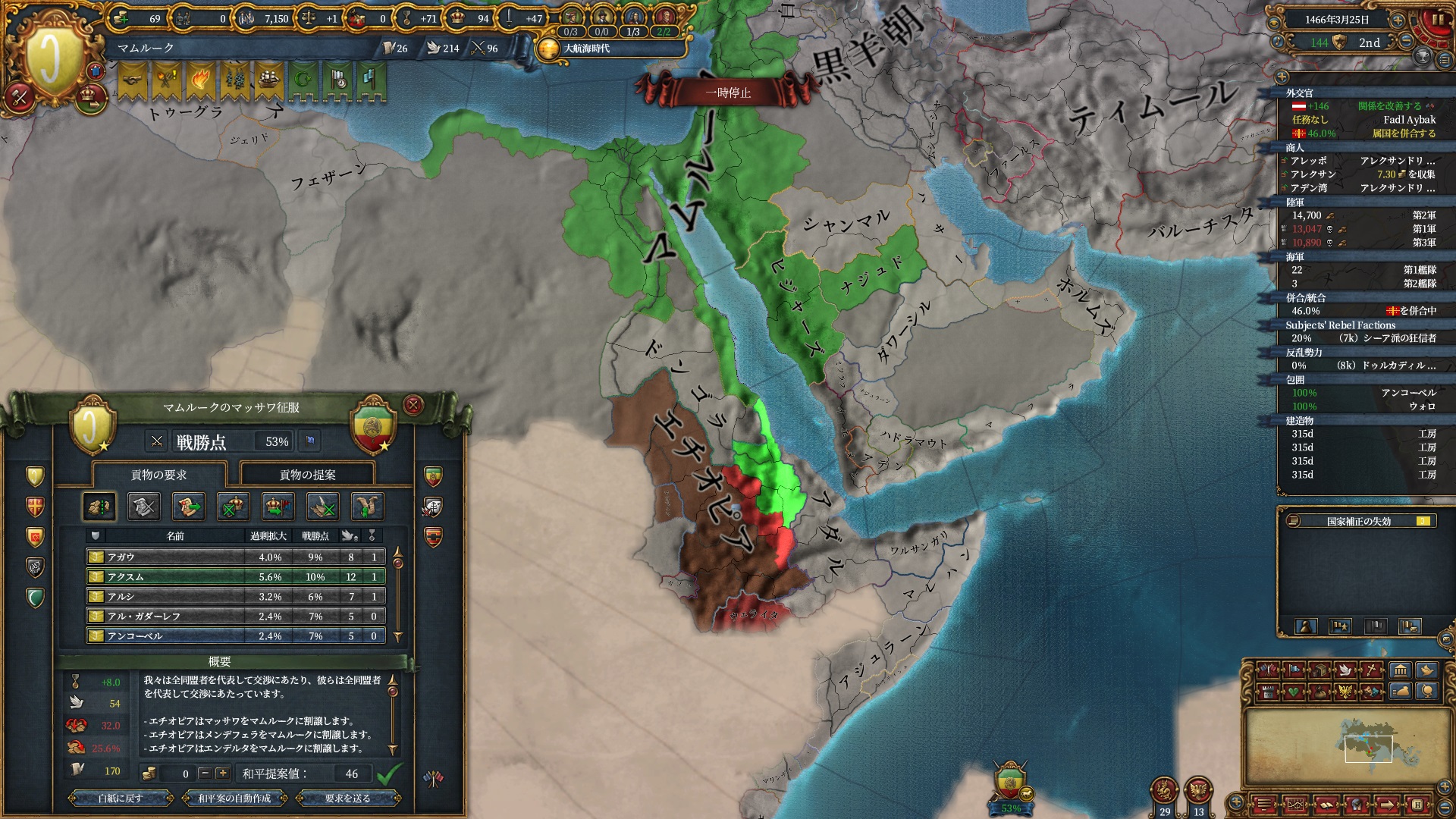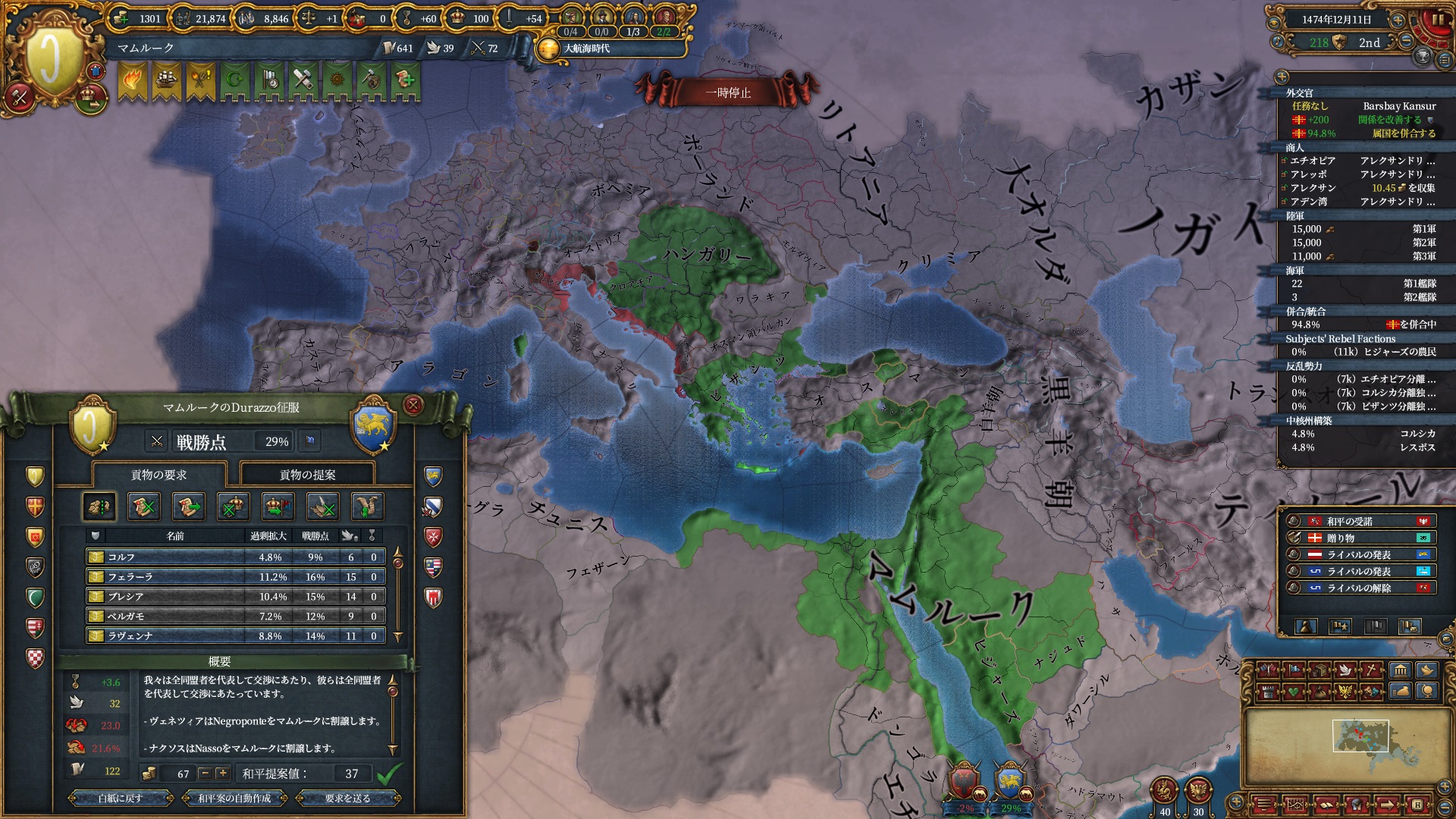 戦争中にクリミア属国イベントが発生し、オスマンは少しパワーアップしていました。