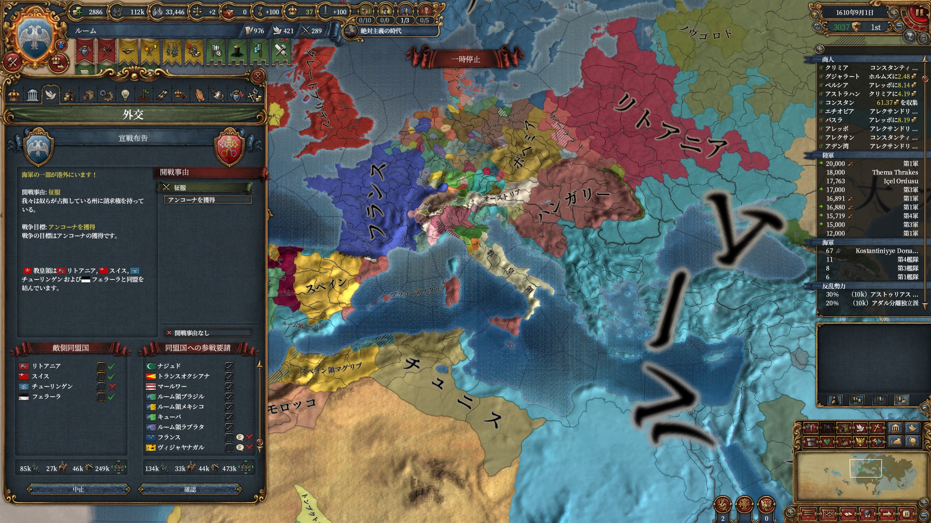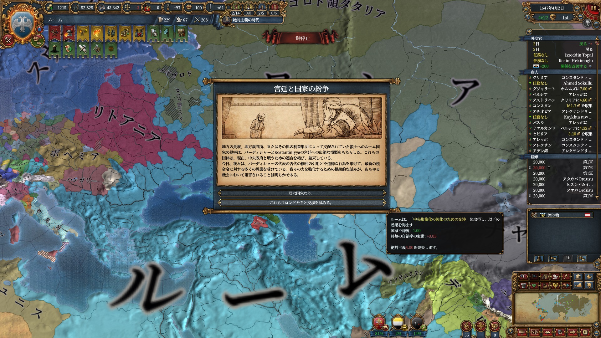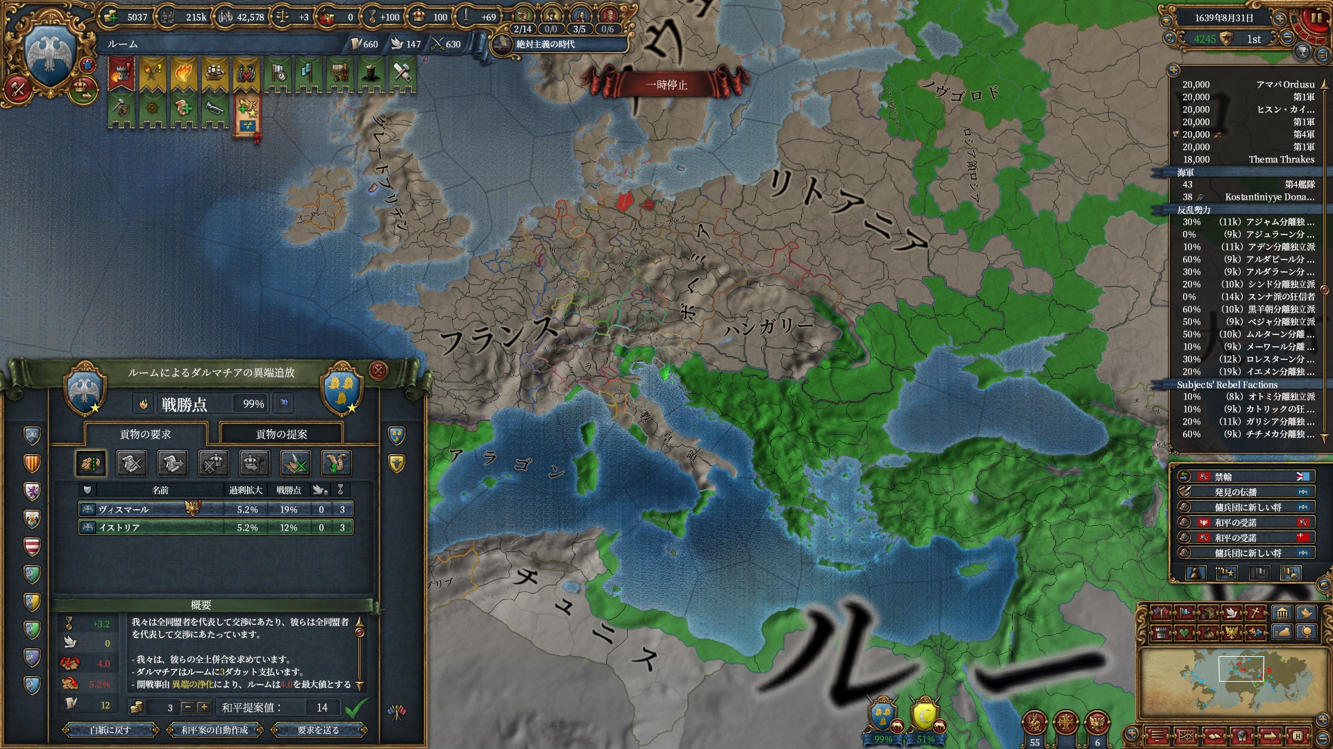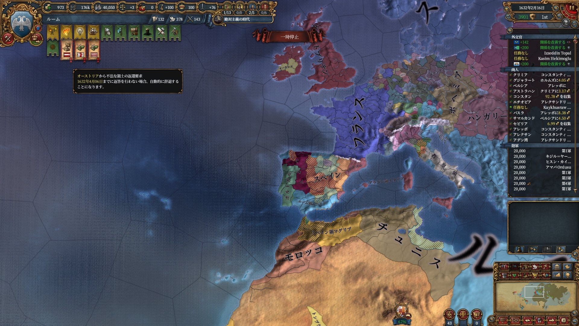 ちょっと逸れますが、絶対主義解禁したのにこの君主力は割としんどい・・・