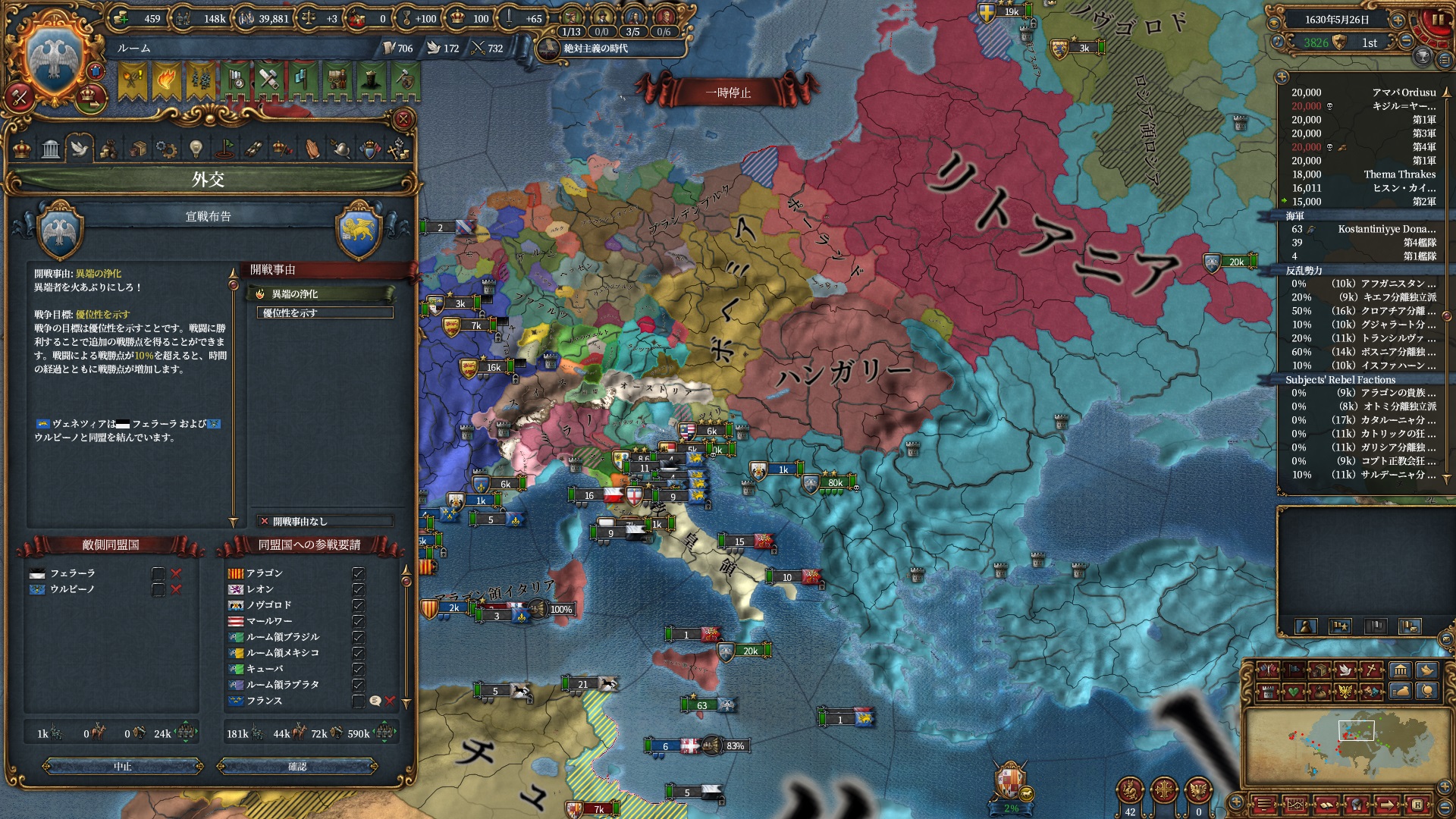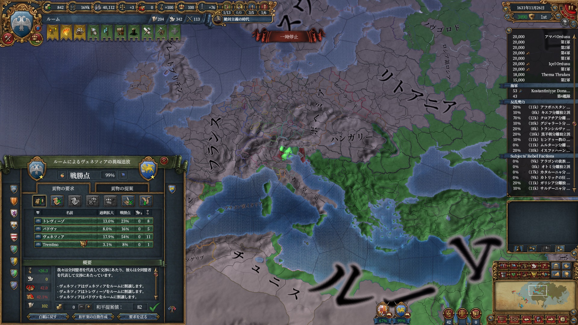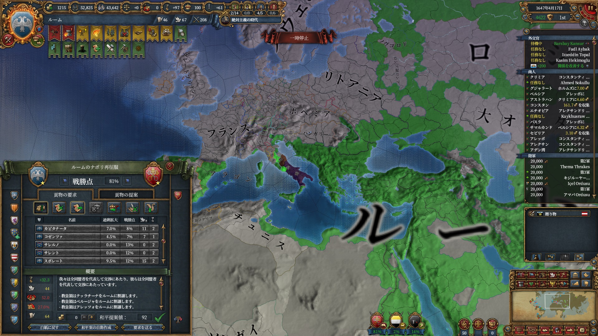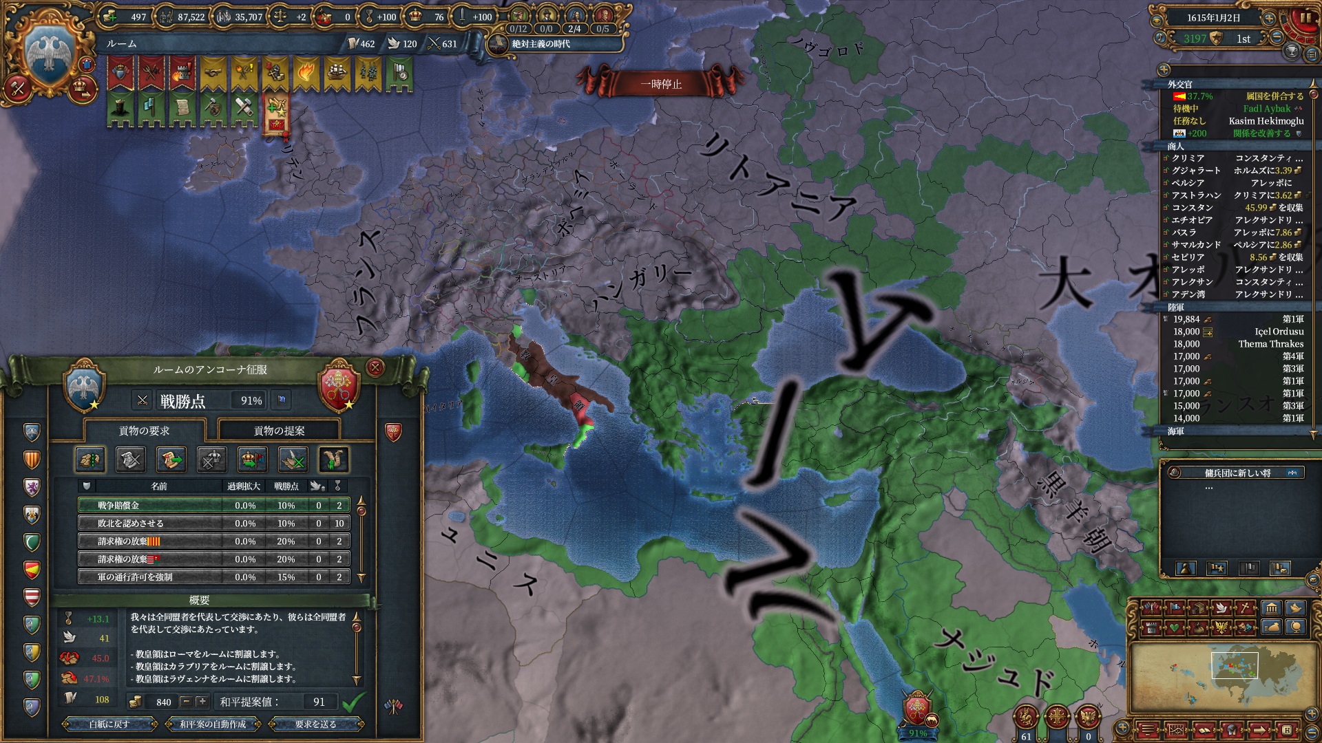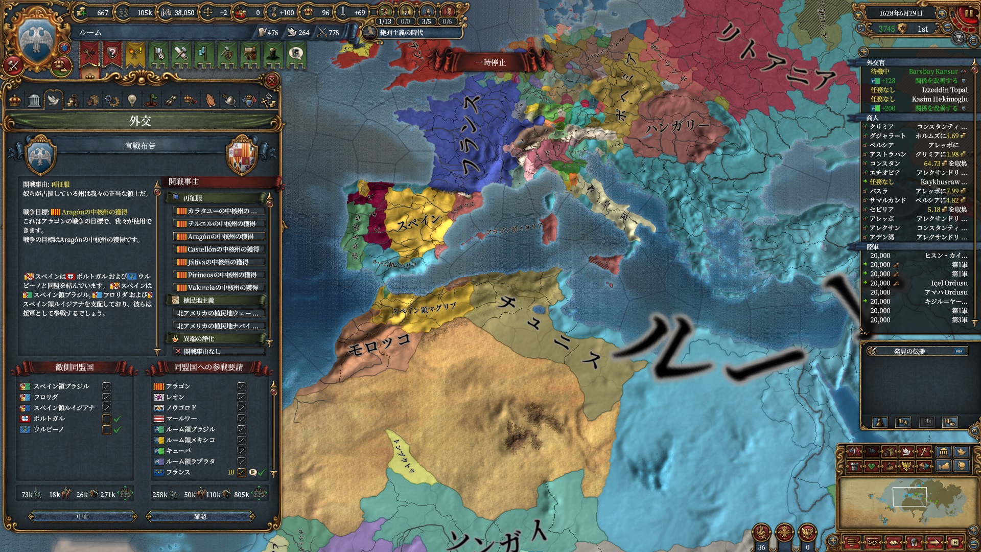 ちょっと逸れますが、絶対主義解禁したのにこの君主力は割としんどい・・・
