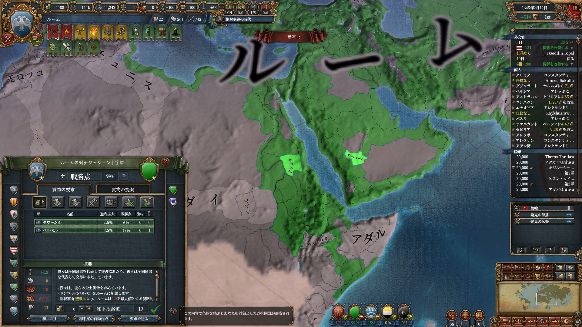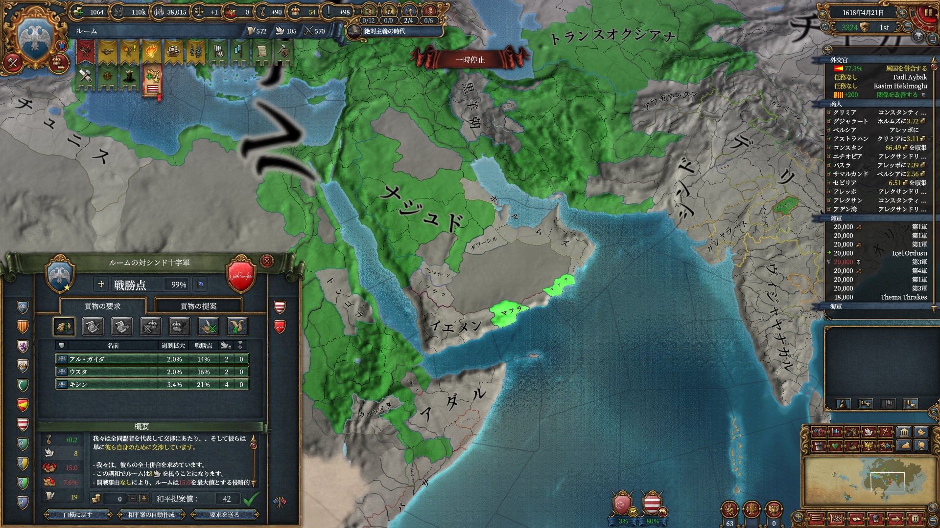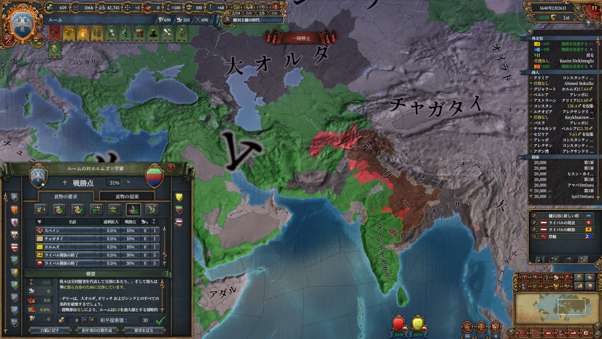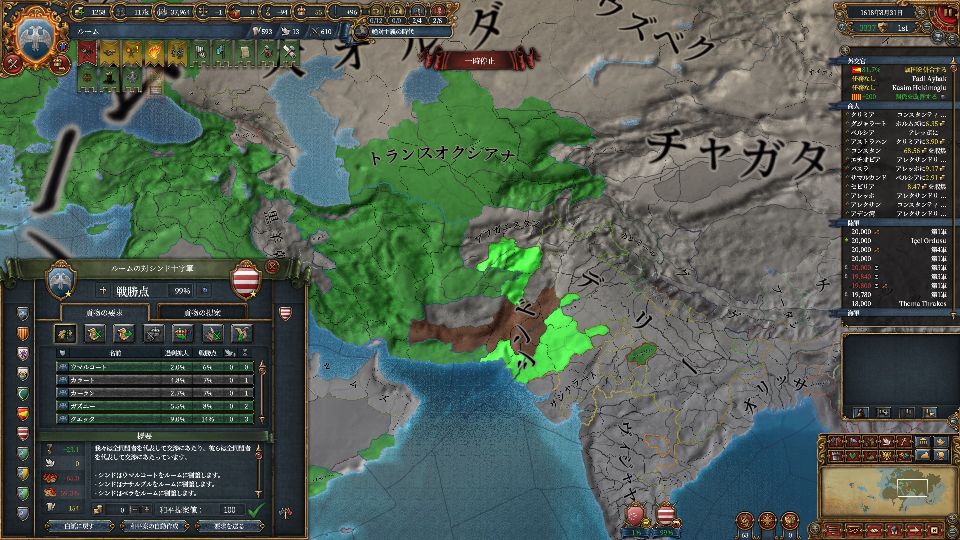 デリーを殴る準備は整いました。ホルムズは勿論全土併合です。