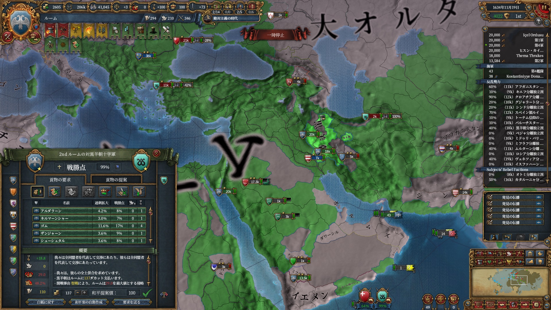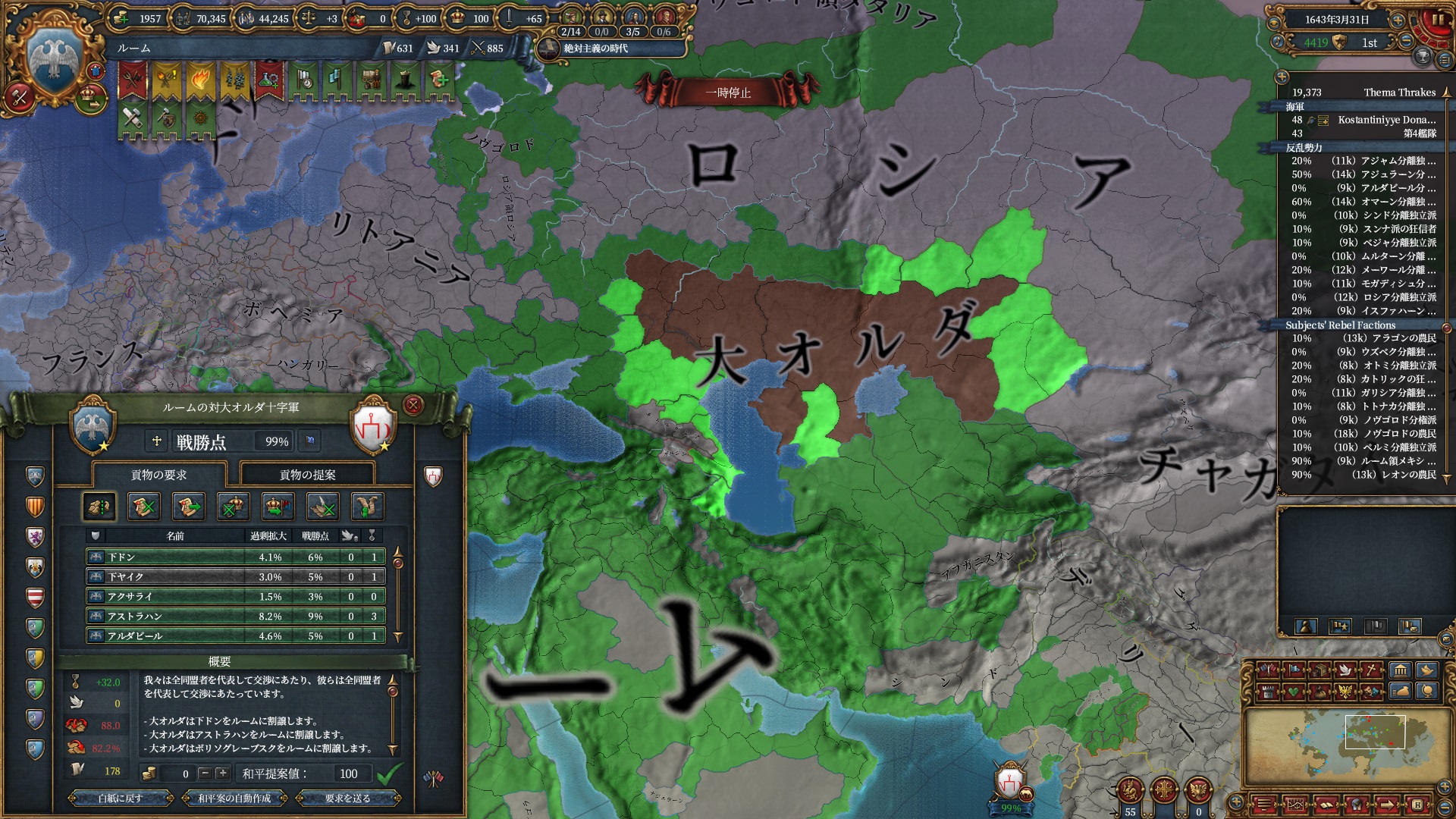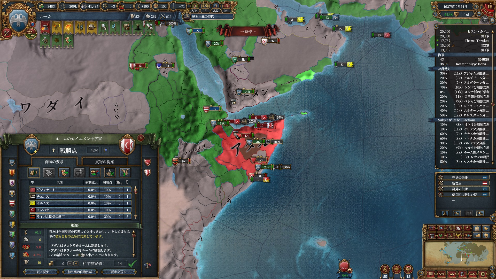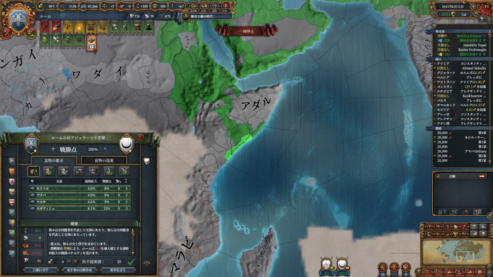 デリーを殴る準備は整いました。ホルムズは勿論全土併合です。