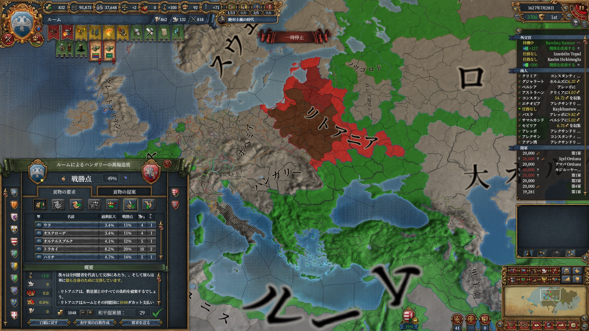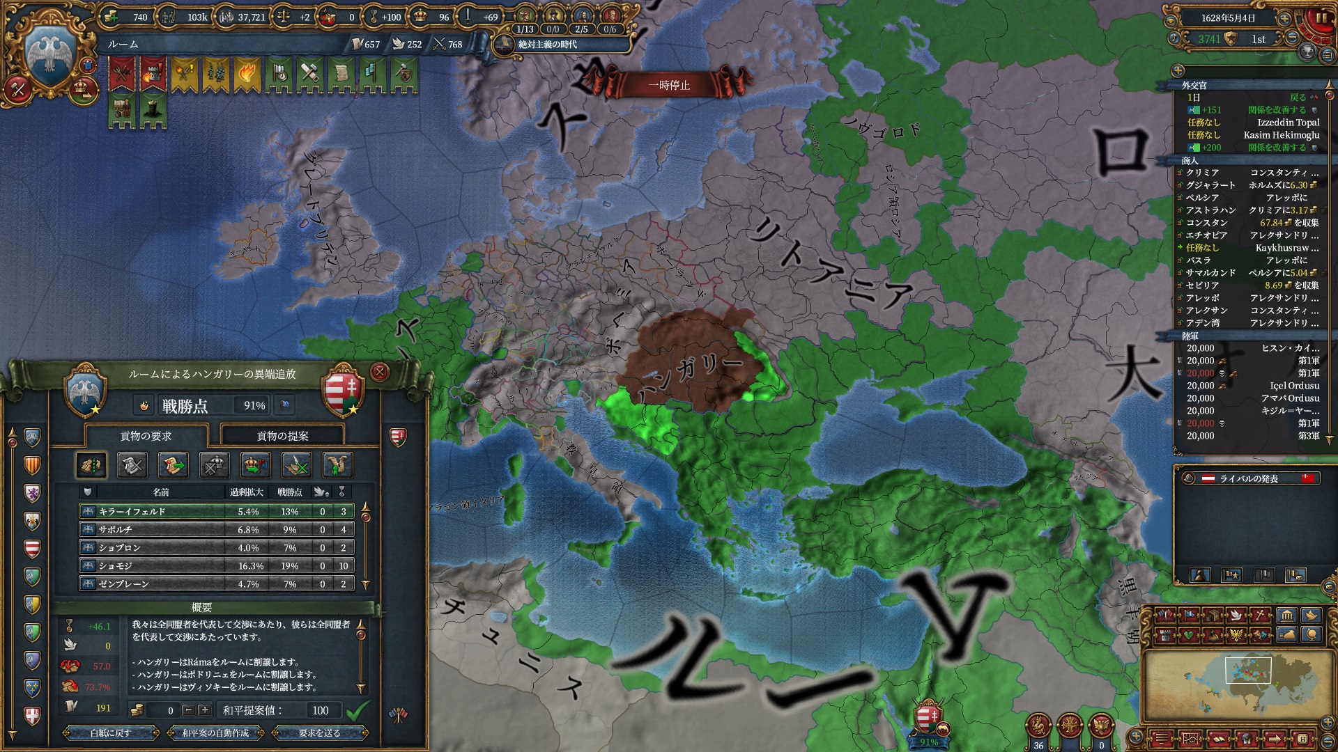 ラグーザノードでハンガリーのTPが発生しているので優先的に奪っています。