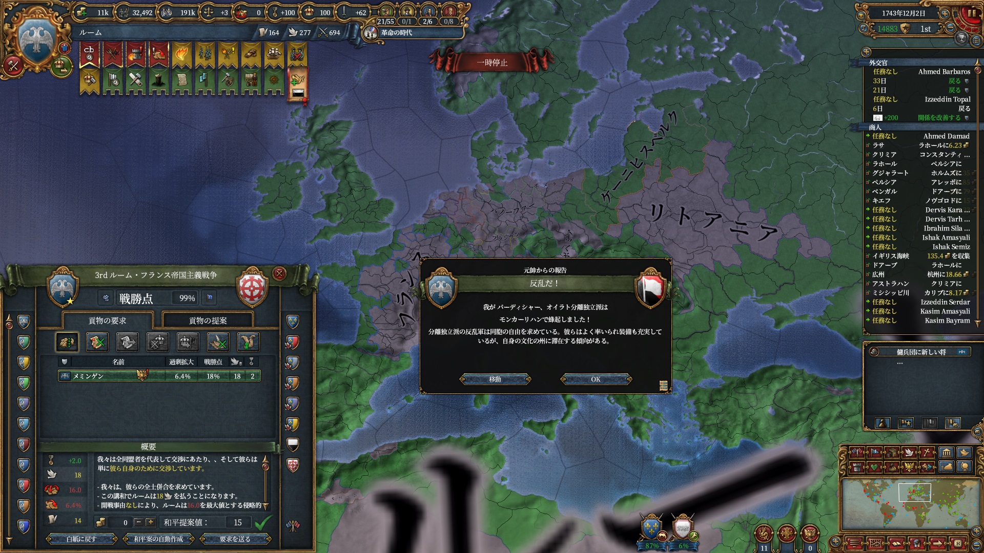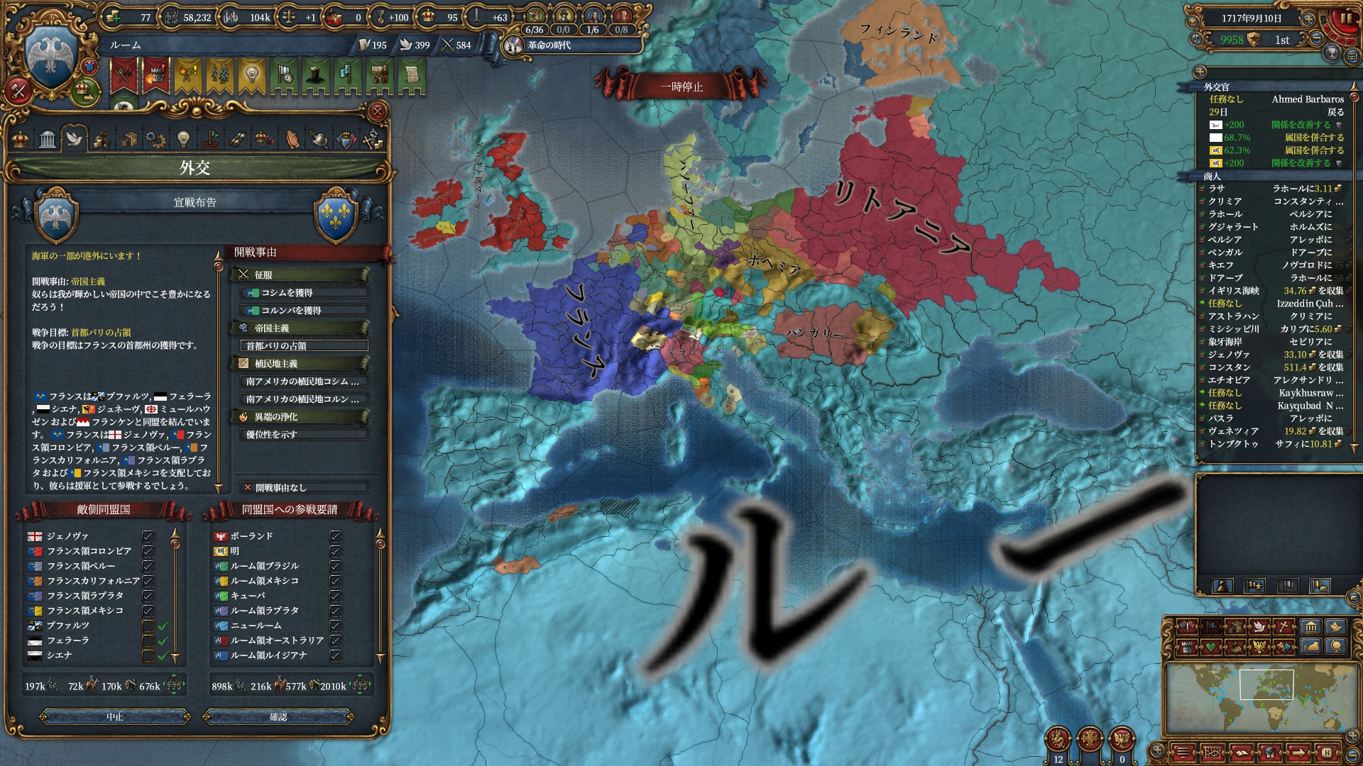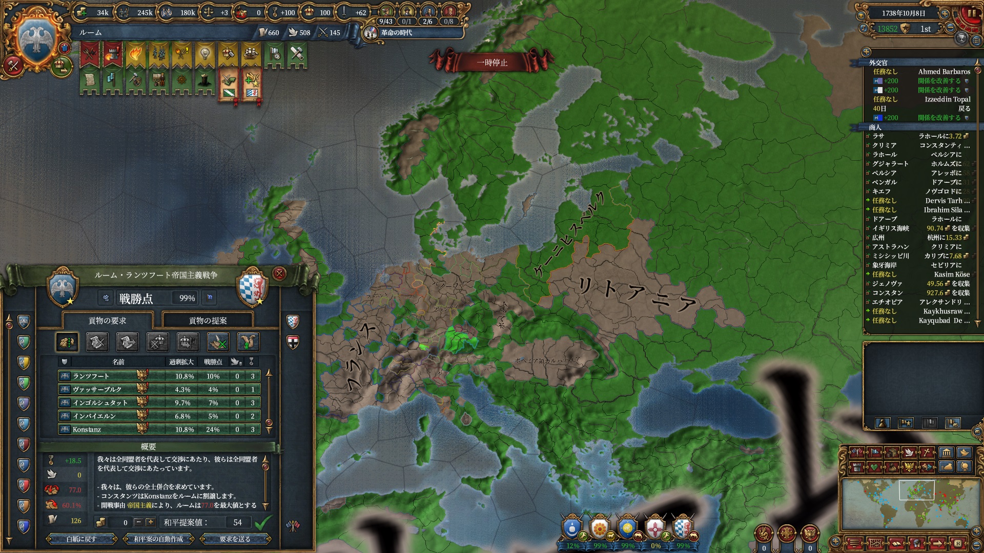 フランスと殴り合いした結果またも人的資源が付きてしまったのでここで講和。