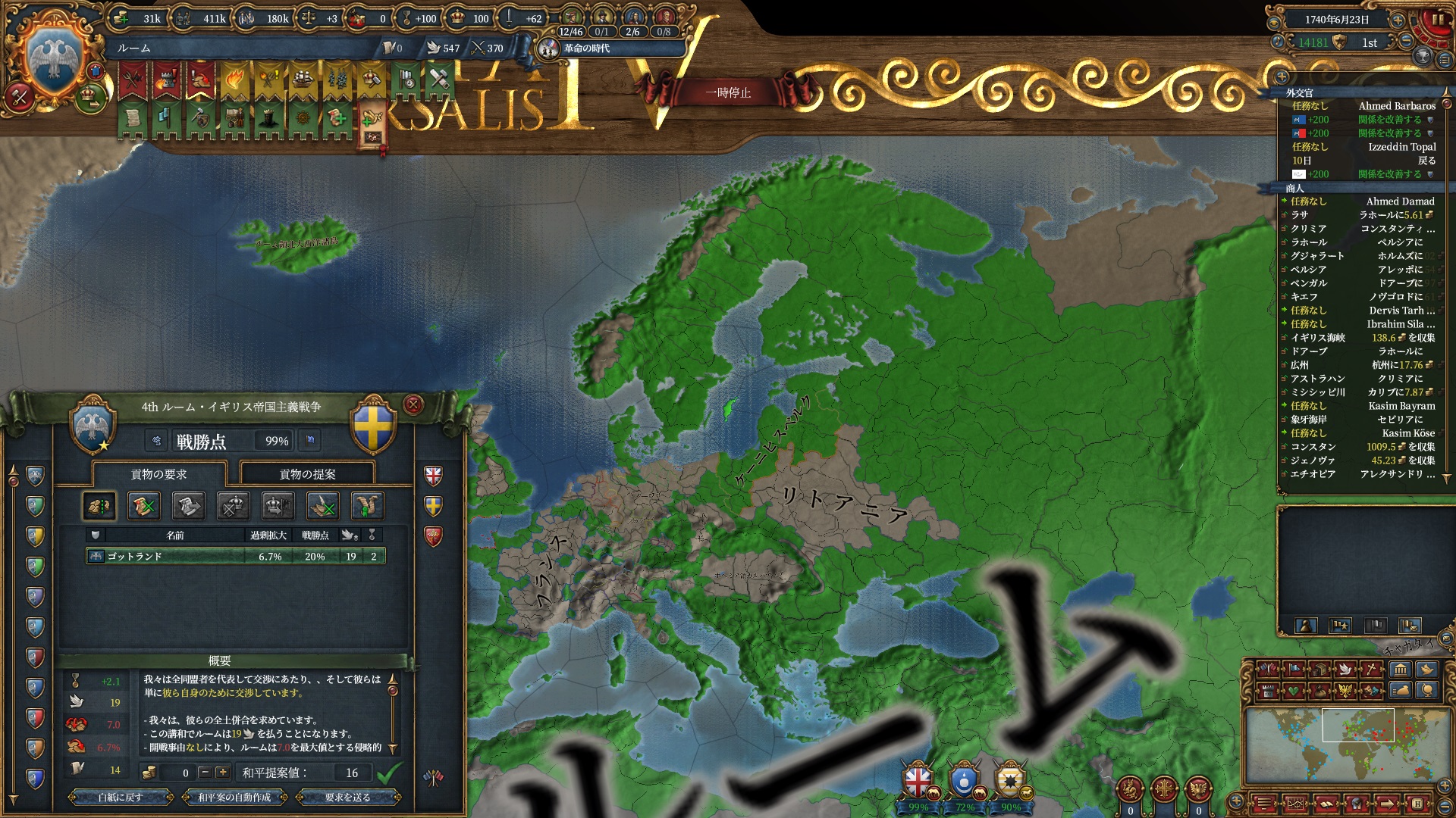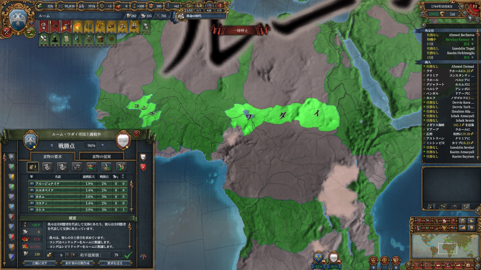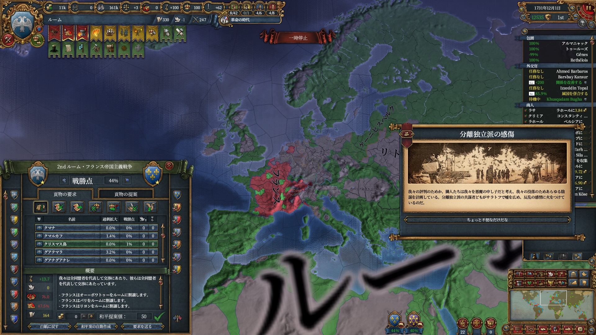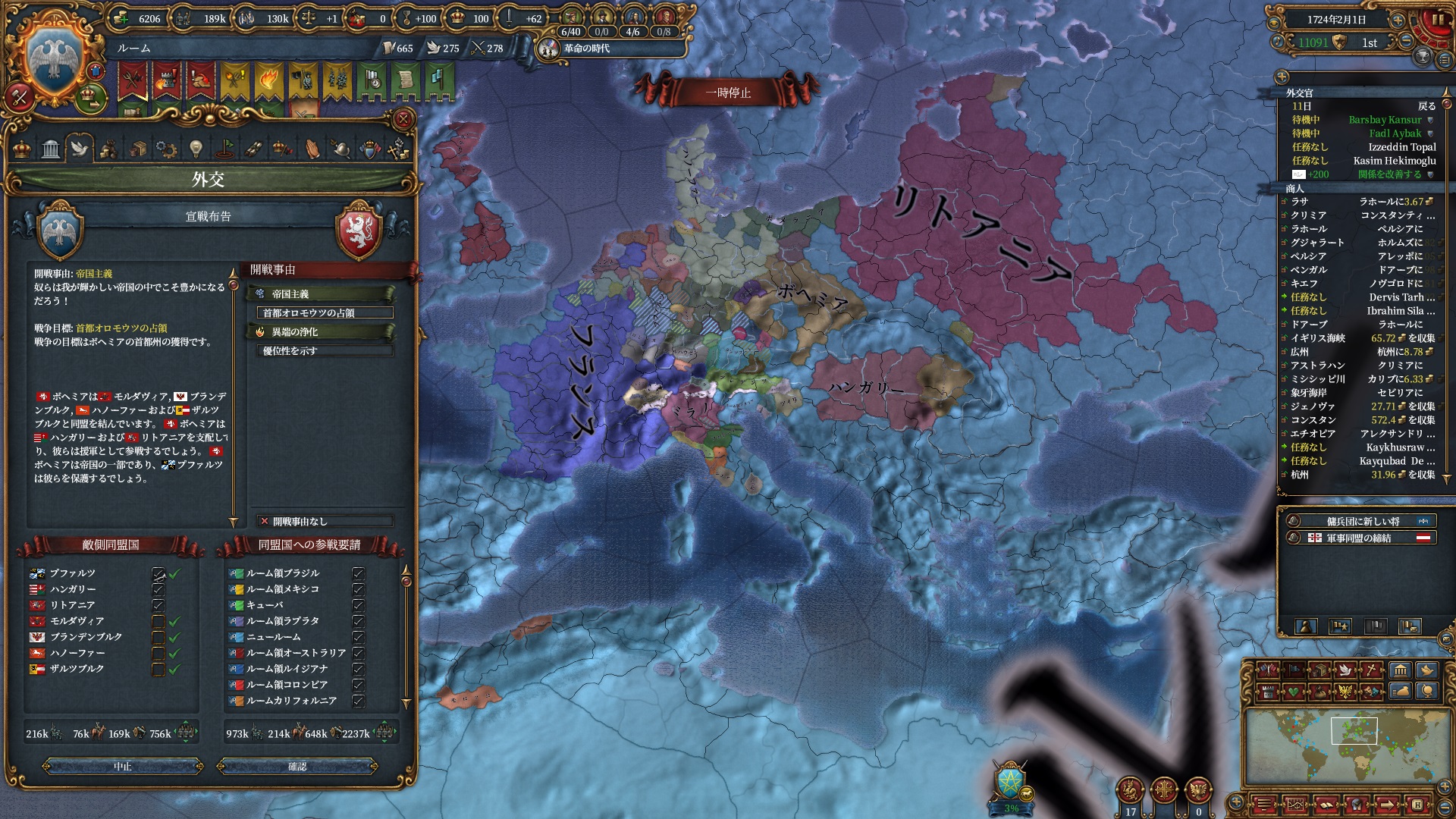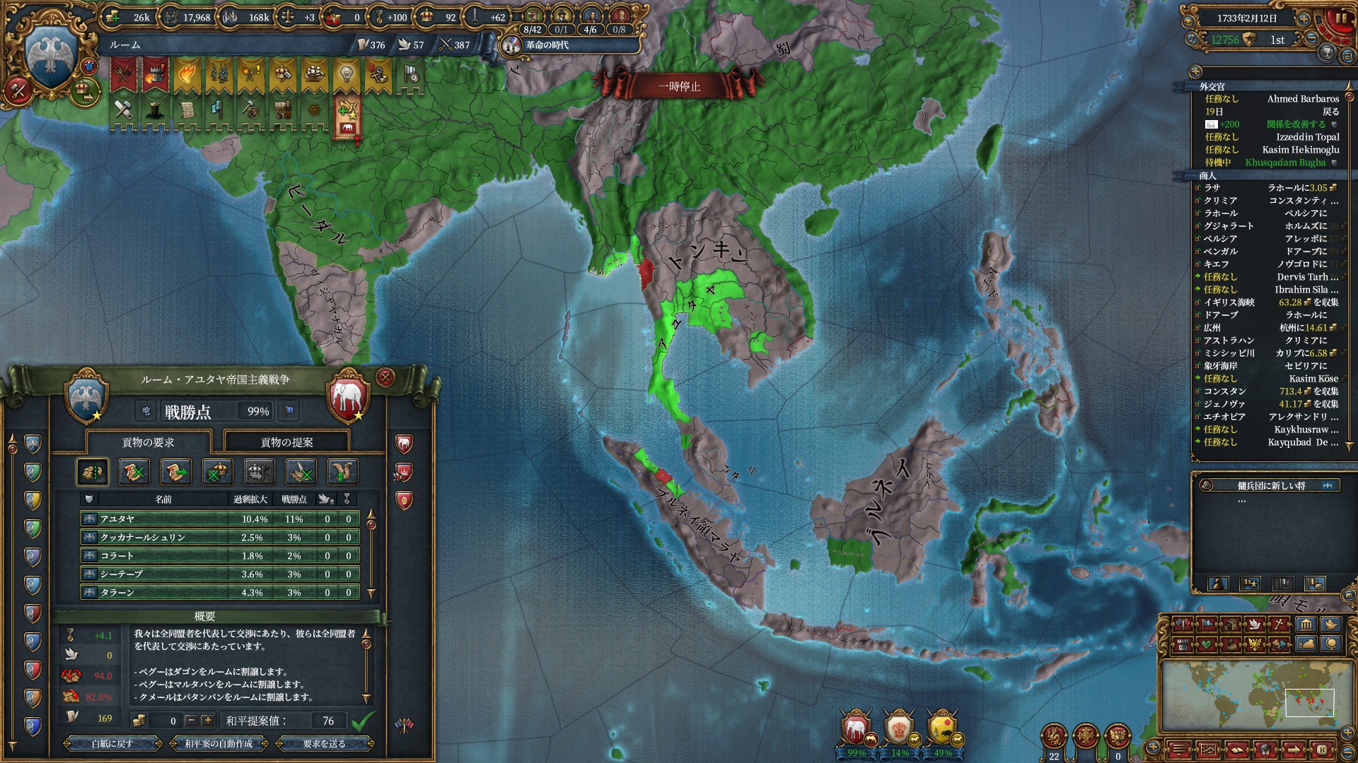フランス・ボヘミア・ヴィジャヤナガル(・満州)を蹴散らして残りは消化試合に持っていきます。
