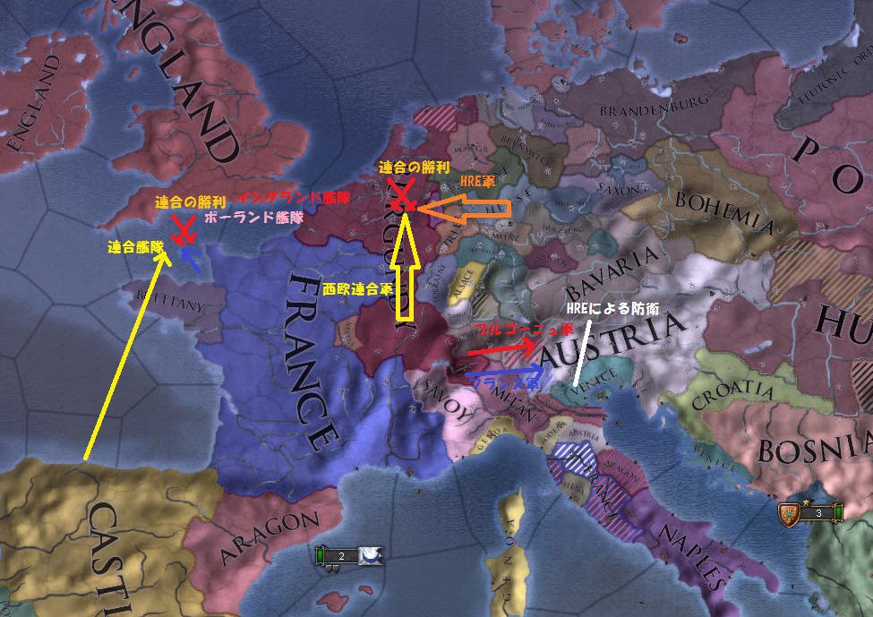 戦争に不慣れなHRE軍は歩調が揃わず、AIの救援に向かうも各個撃破されて壊滅状態に陥ります