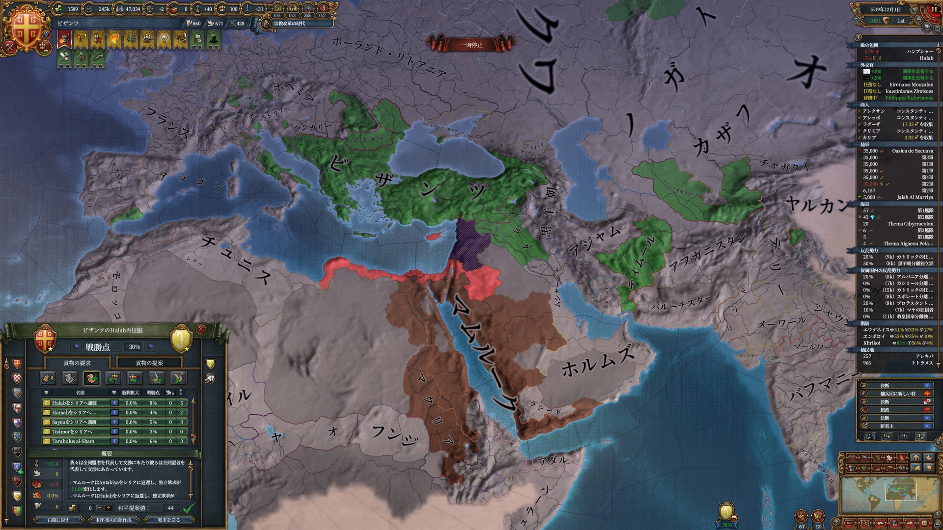 ティムールをはじめとした東方従属国は役目を皇帝に任せ現役を退き、中東やインドにプロノイアを作るほど東・南方面は拡張が成功しつつあります。