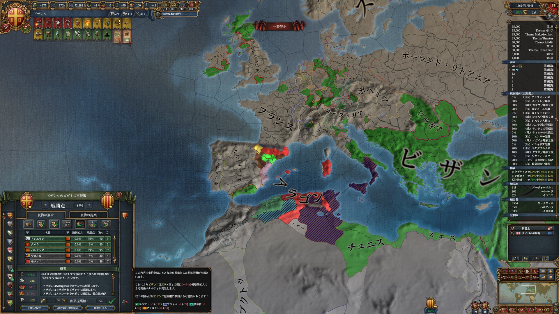 即座にビザンツへの変態が可能になる他、イベリア、アイルランド、シベリアへの嫌がらせ飛び地を作っています。