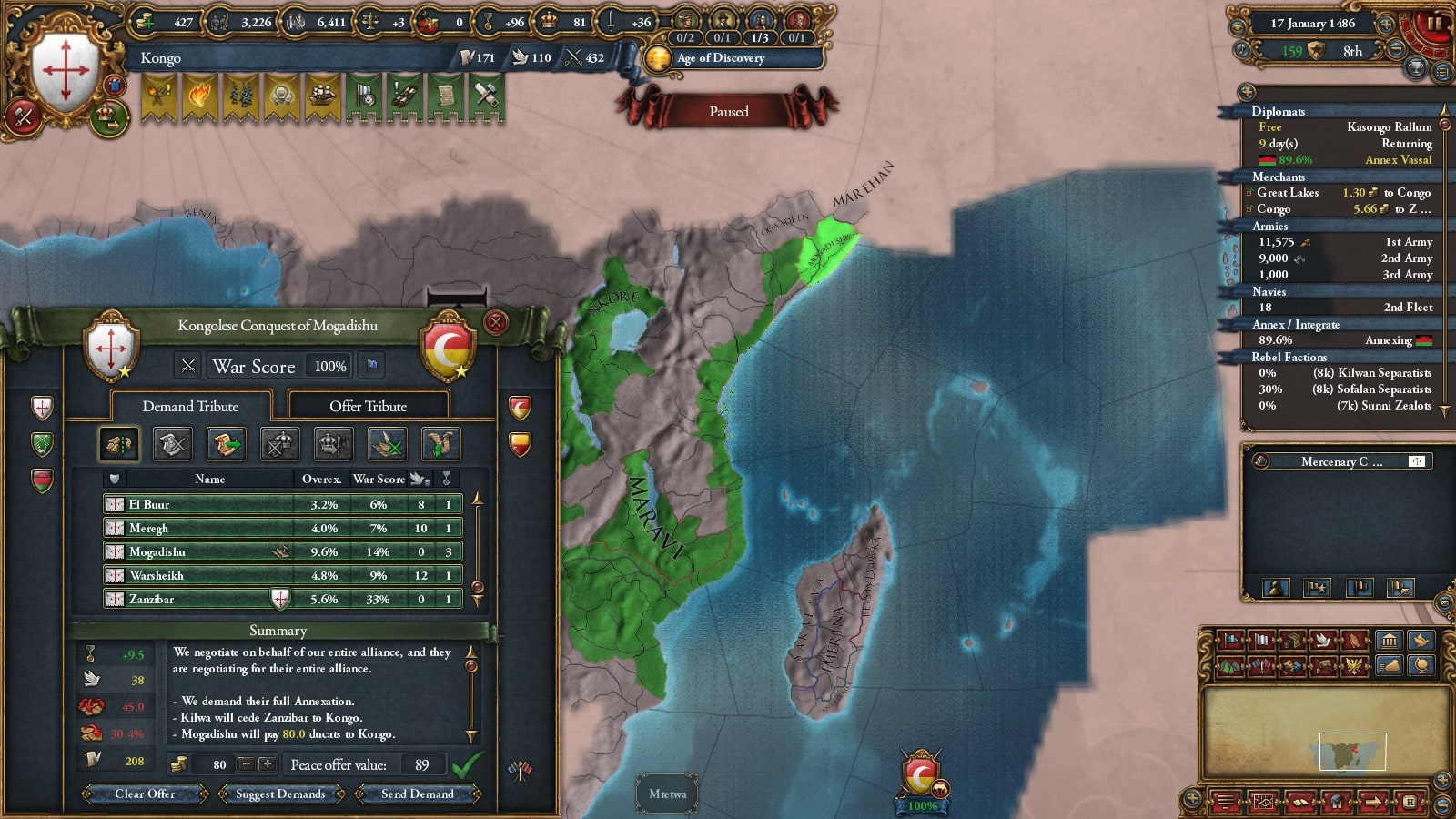 キルワがモンバサ・あじゅりゃん戦で弱っていたので属国の再征服CBを使って攻めます。