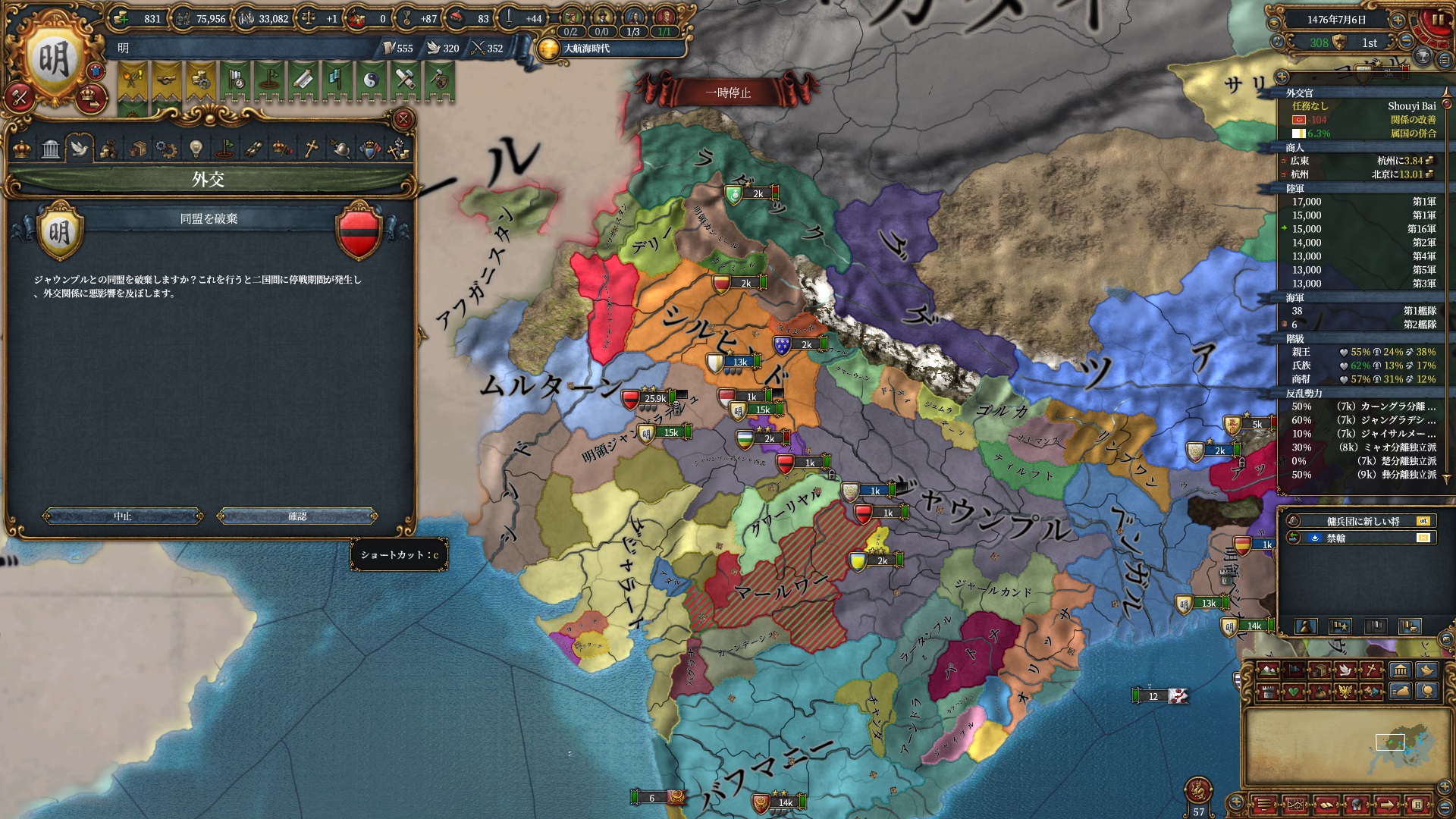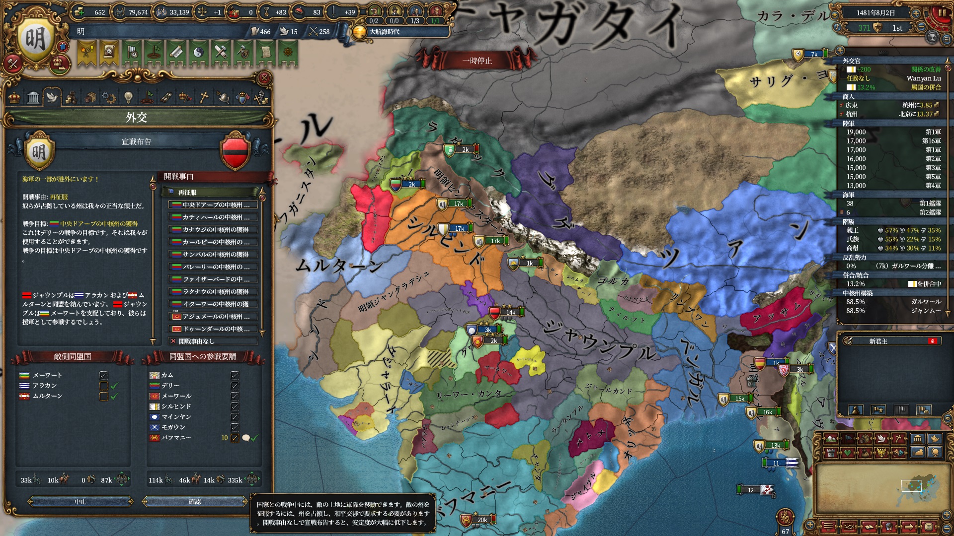まだ儒教なので改宗面は腐っていますが、調和を碌にしていないため儒教のまま聖戦CBを仕掛ける事ができます。