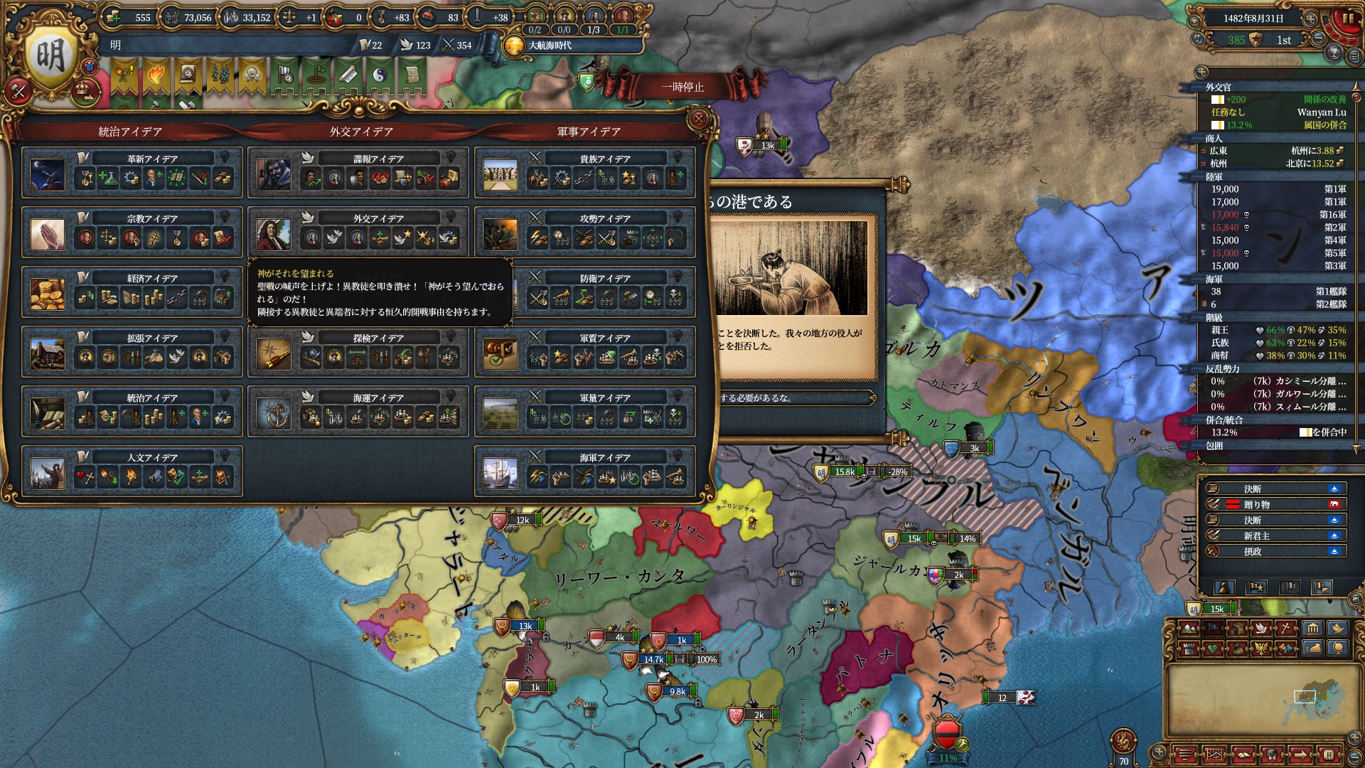 欧州は全く見えないので実態は分かりませんが、列強スコア的にはフランス・ブルゴーニュのスタートダッシュが決まっておりオスマンも滑り出しは順調といった感じです。