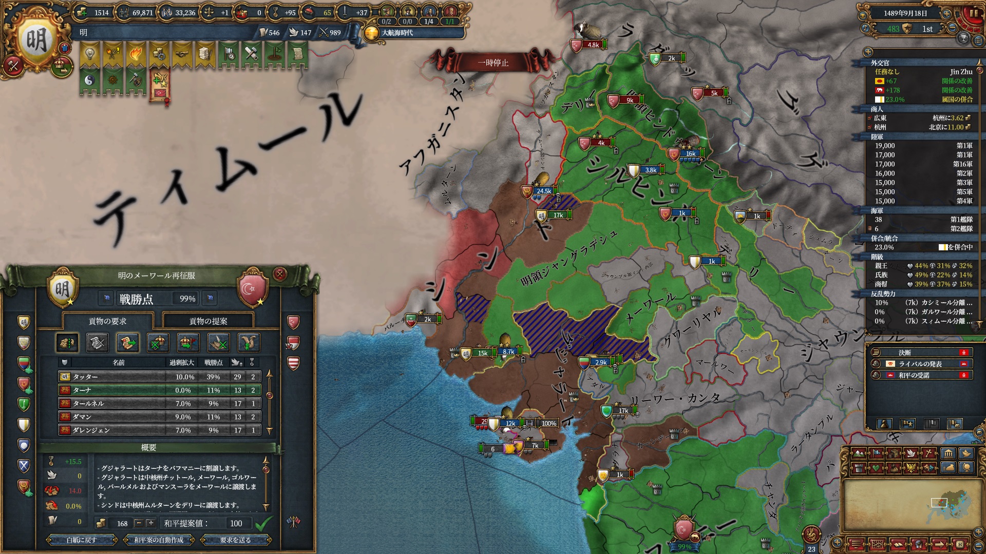 これでジャウンプルに対し広大な属国再征服CBが使えるようになりました。