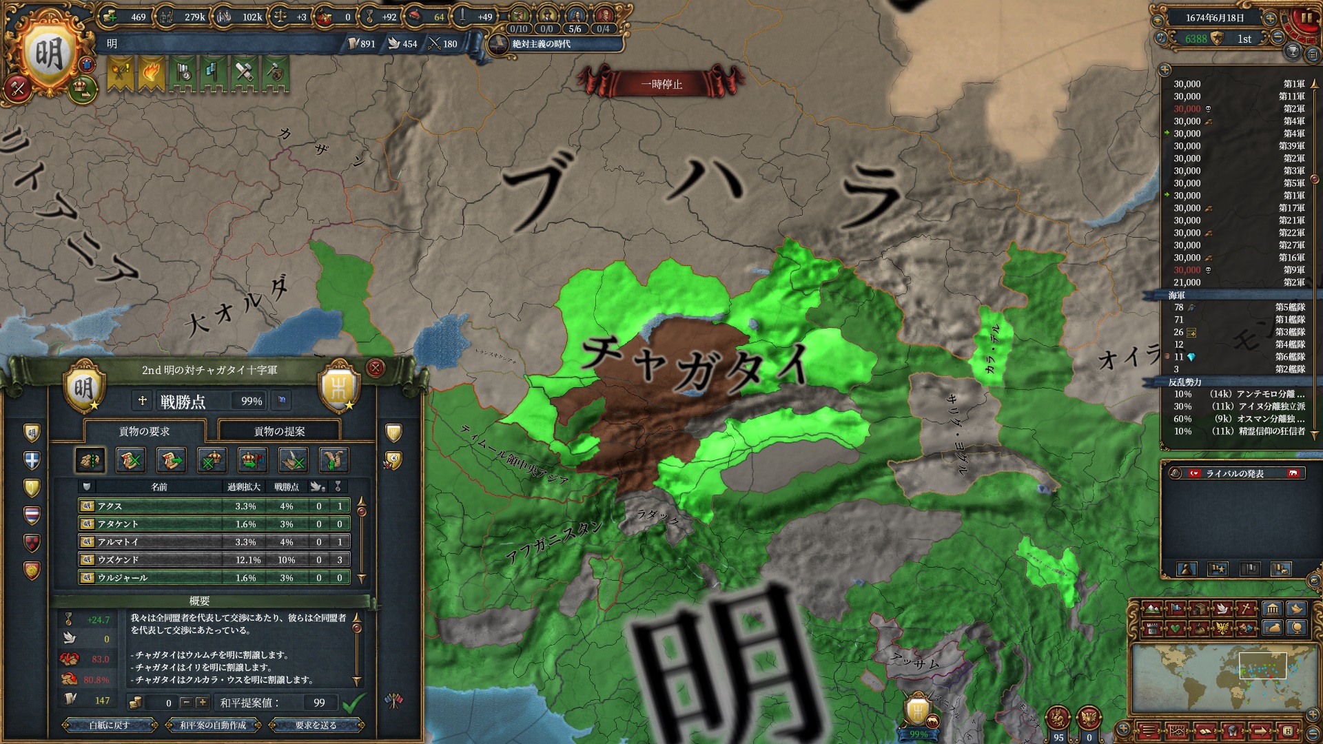 見返してみるとCoTの割譲も緩く内政力的にはまだまだ健在ですねオスマン。何故金を毟ってしまったのか