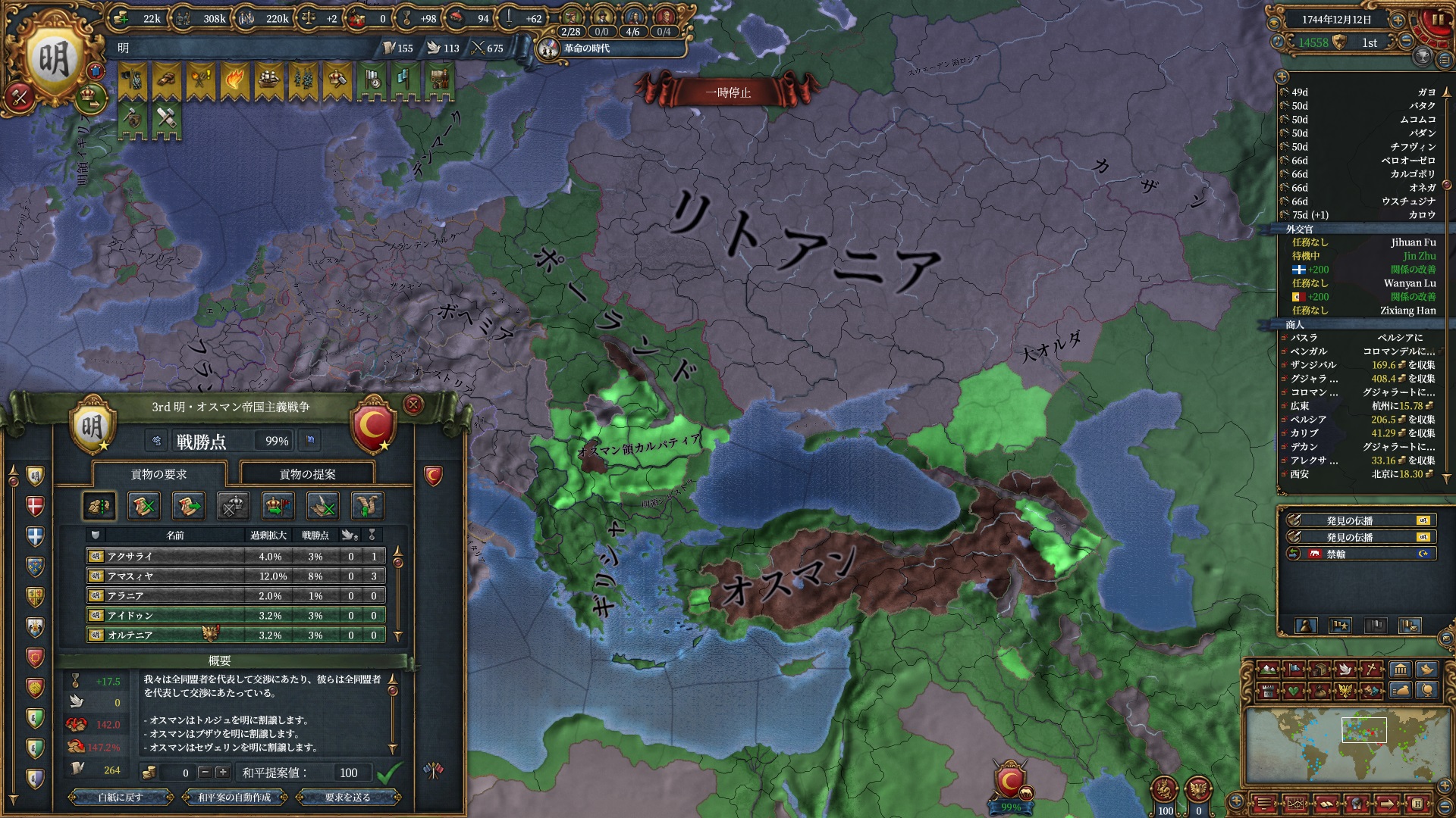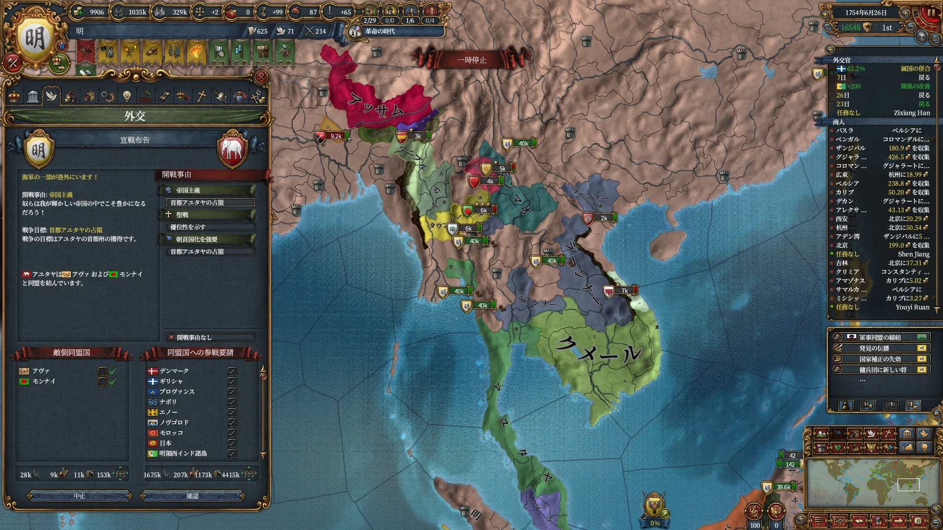 次はオスマンに行く予定なのでアチェと同盟しているラーンナーに仕掛け、同盟破棄させました。