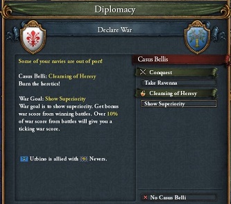 Aragonと隣接しているのは属国のSpoletoなので聖戦は使えないのだが,Sicilyの種地さえ取れたらそれで良い.