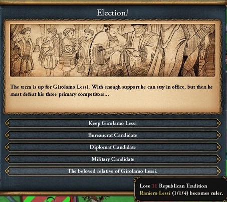 0/0/0みたいなのを確実に避けられるものの,共和制では君主制と違って廃嫡ガチャを回すことができないのが辛い.