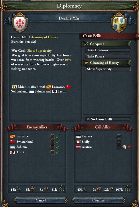 Emilia-Romagnaを領有したことでミッション2-3を達成,LombardyとPo Valleyに請求権を得るが今更である.