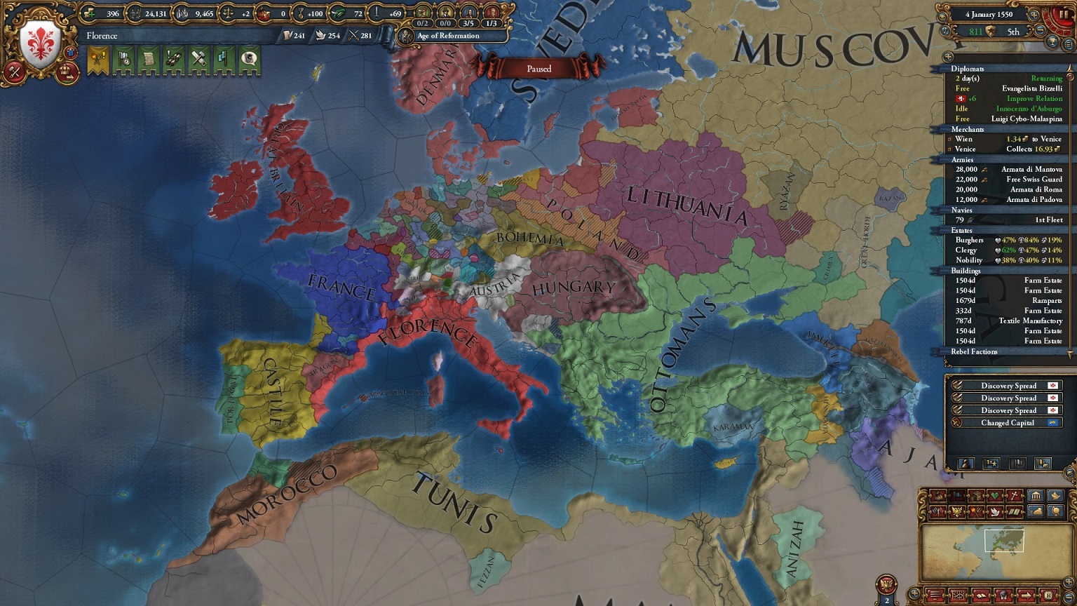 Florenceは西地中海の覇者になった.ここまで一度も包囲網を組まれていなかったと思う.