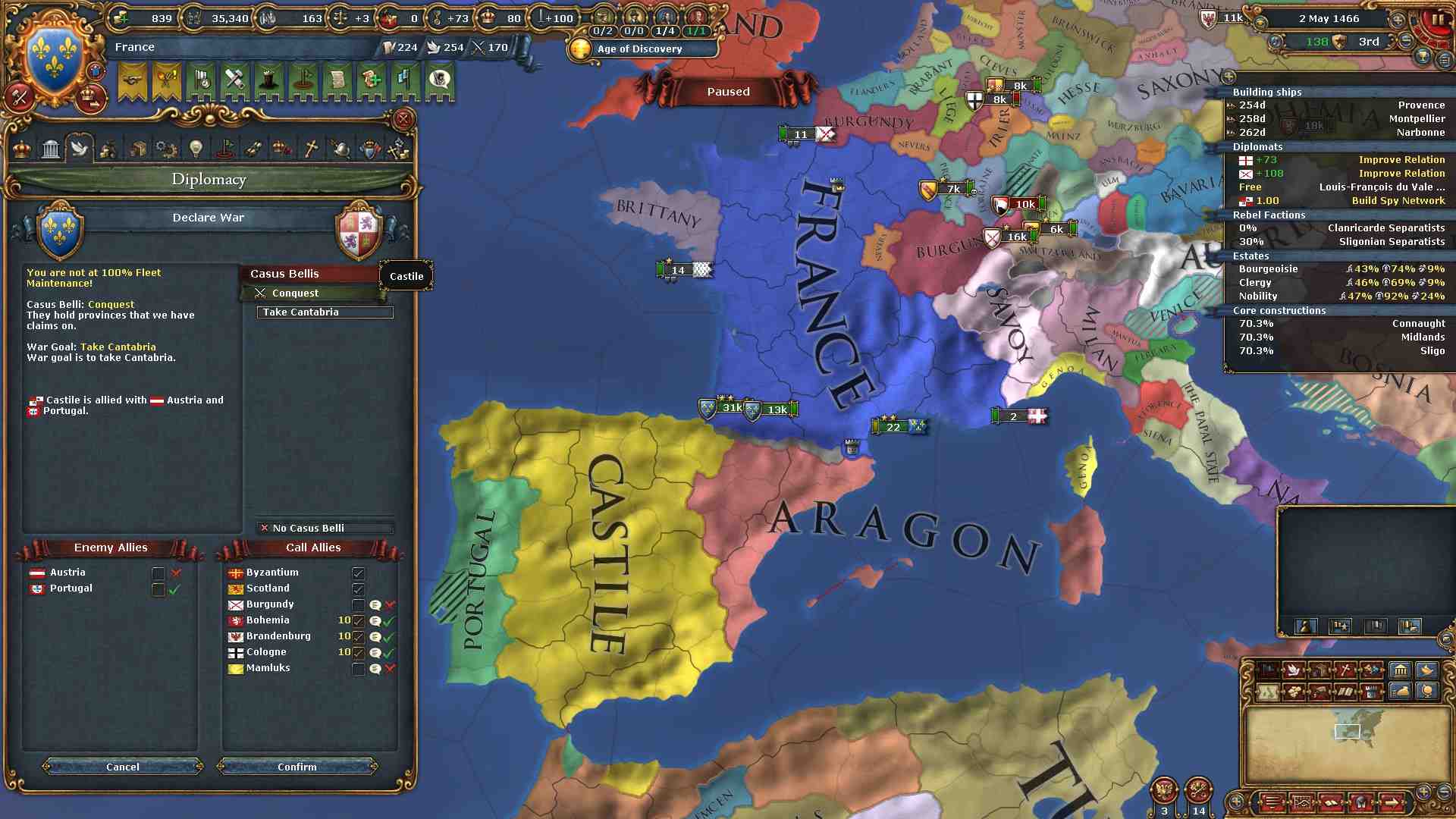 また同盟国のブルゴーニュとは攻撃的戦争のチェックを外しておきます。
