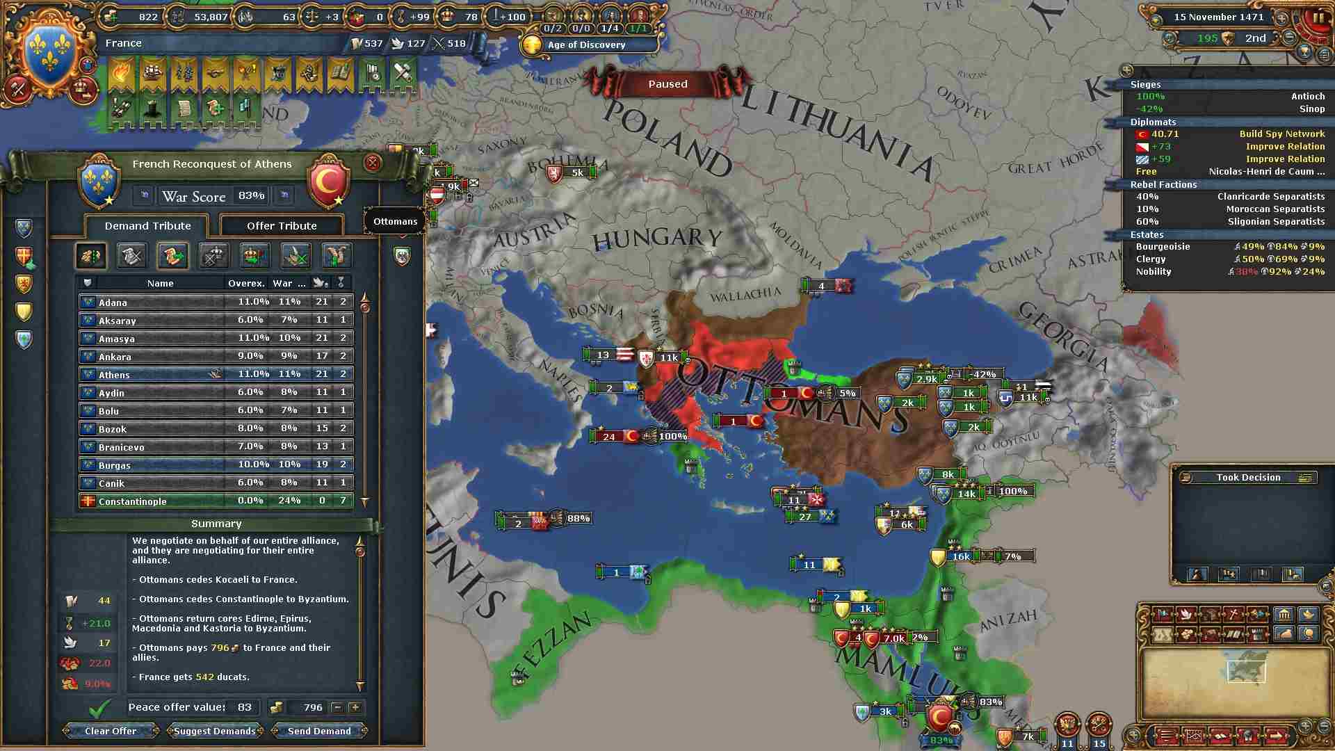 早い段階でオスマンを叩けた上、アナトリア地方への橋頭保も確保出来ました。