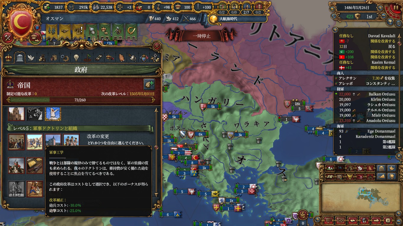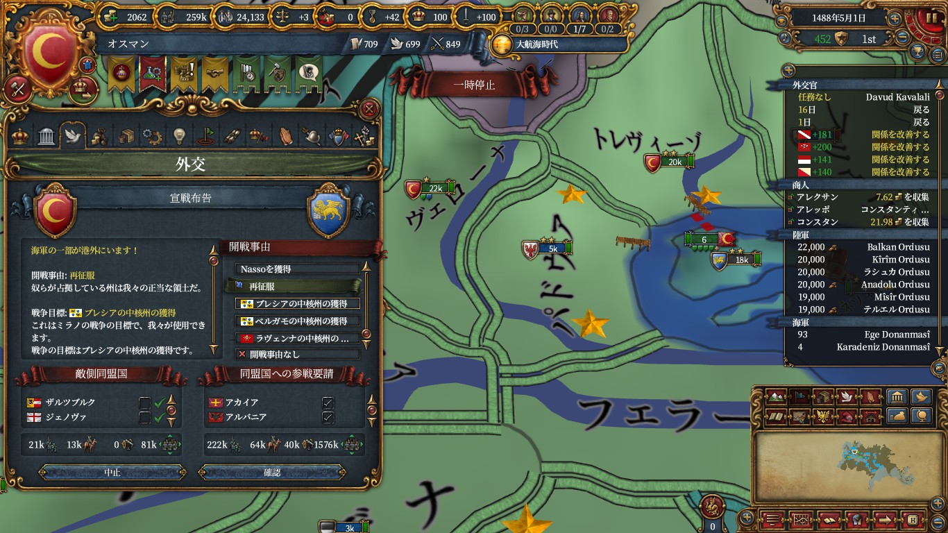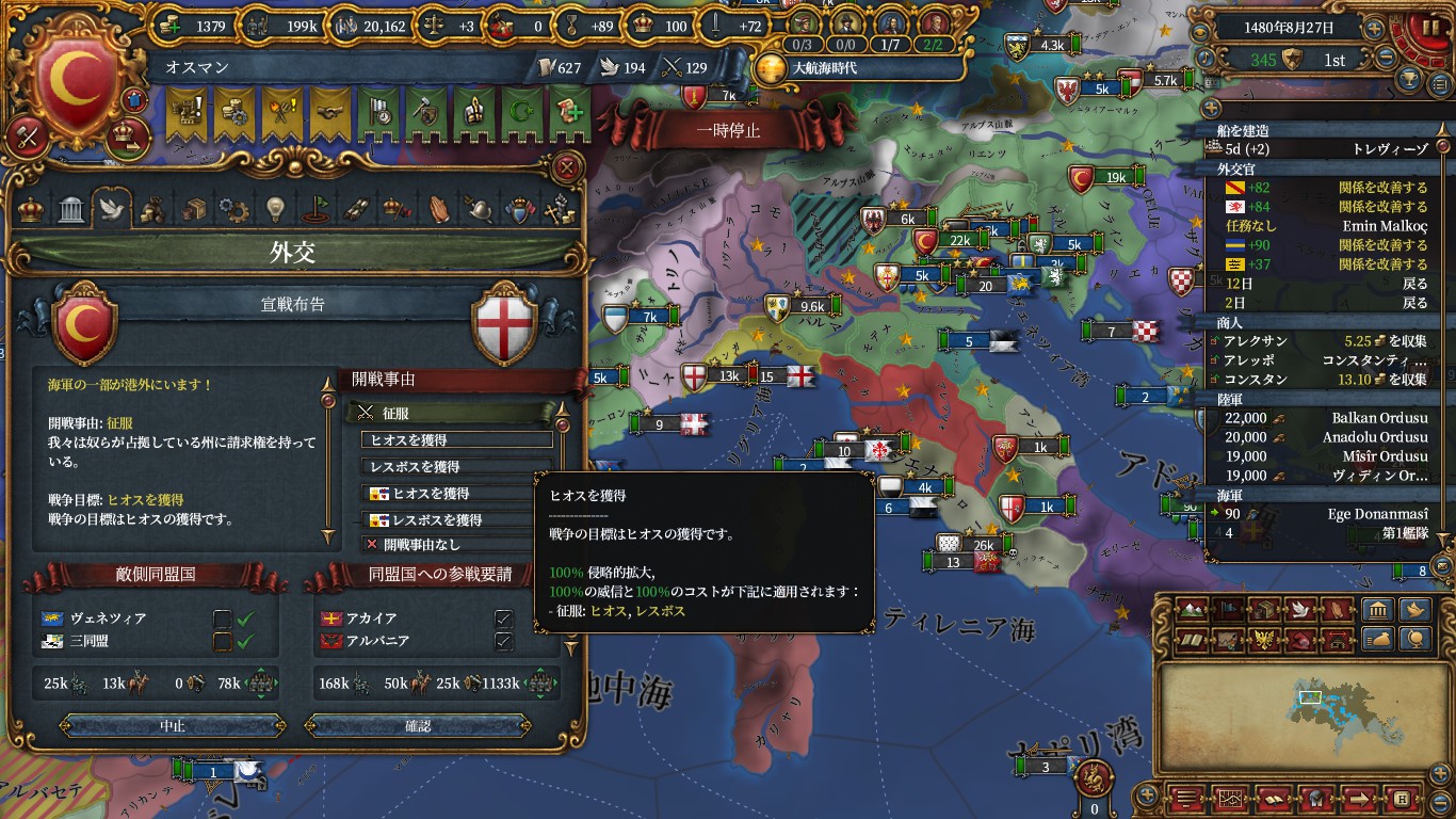 これをしないなら、オスマン実績で諜報を取る意味は少なそうです。軍隊操作が凡庸な自分には最適でした。