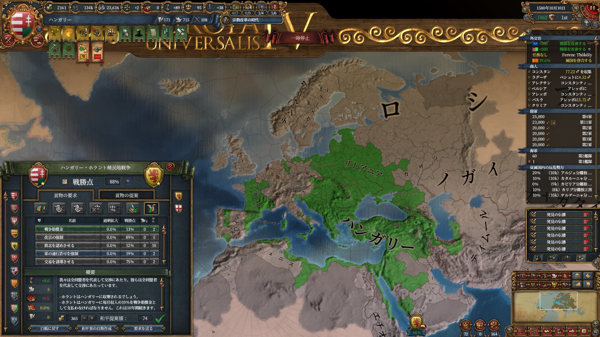 またこの戦争により1594年消滅コアが全て期間延長されたため、もう暫く再征服は続けられそうです。