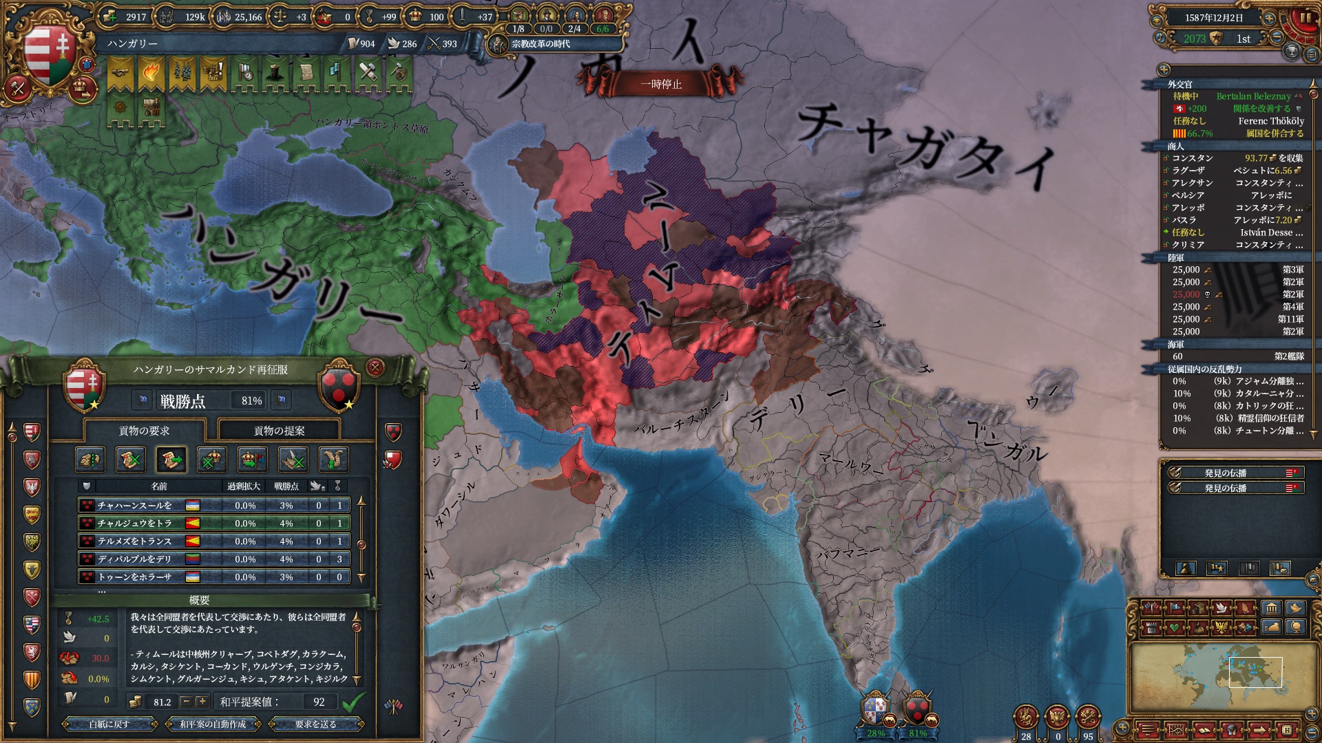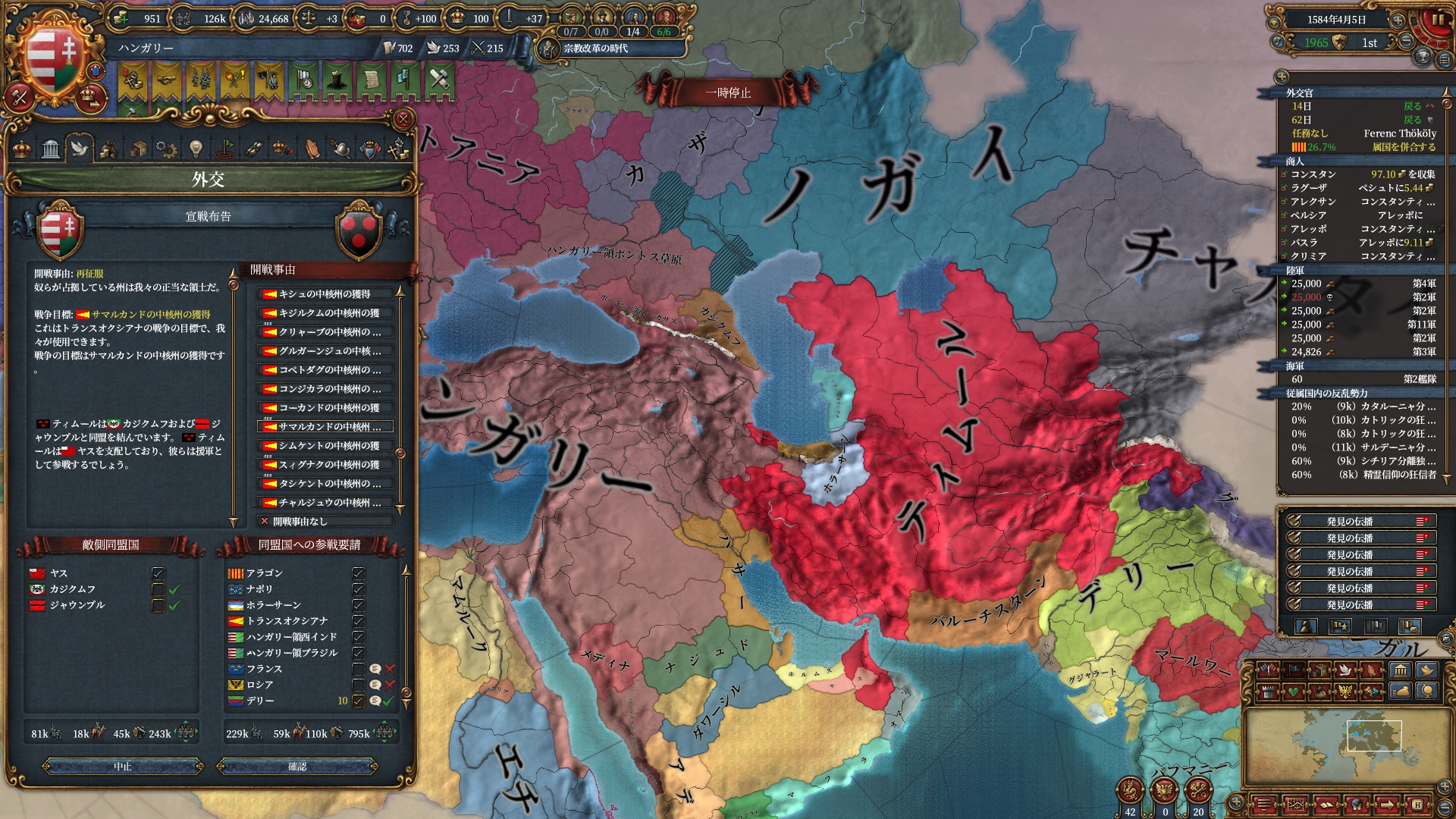 ここからイベリア勢のAEが冷ませなくなり、ティムールと同様停戦ループに入りました。